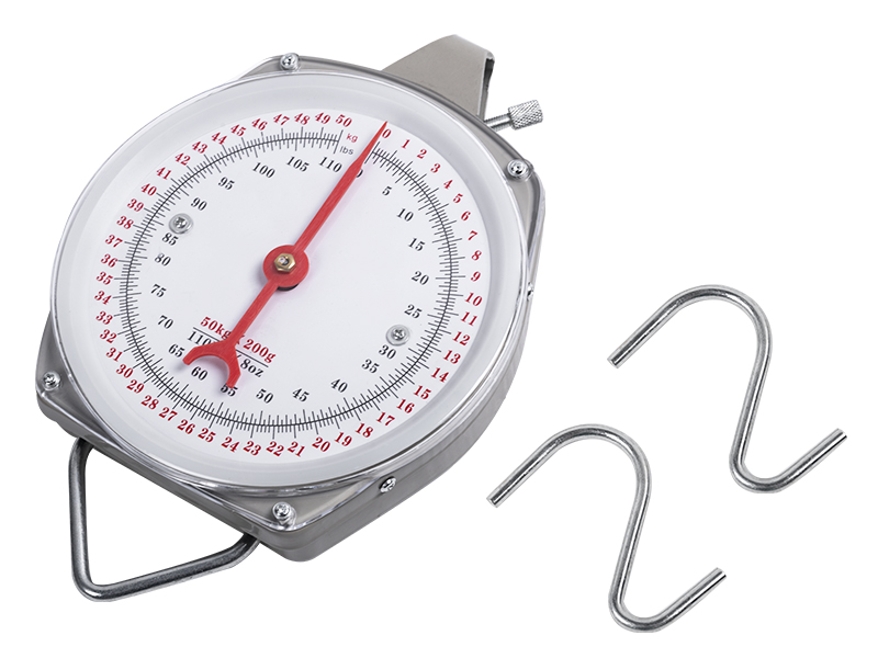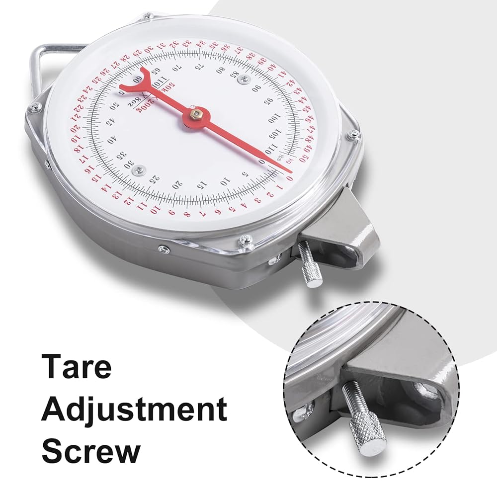 • سهل القراءة: بقطر 6.57 سم، يتميز مقياس القرص المعلق بقرص كبير يمكن قراءته بسهولة من أي زاوية تقريبًا. يتمتع الميزان بسعة وزن قصوى تبلغ 110 رطل/50 كجم ويعرض الوزن بالجنيه والكيلوجرام