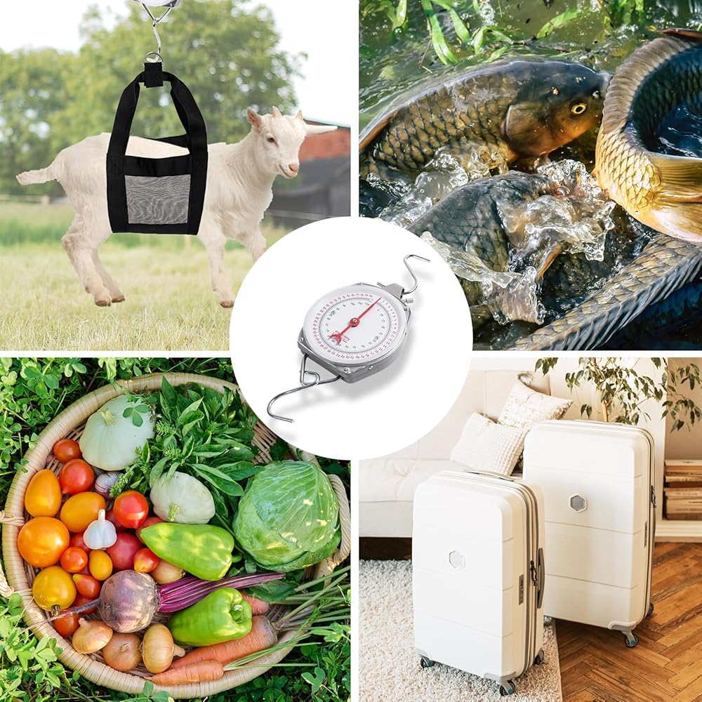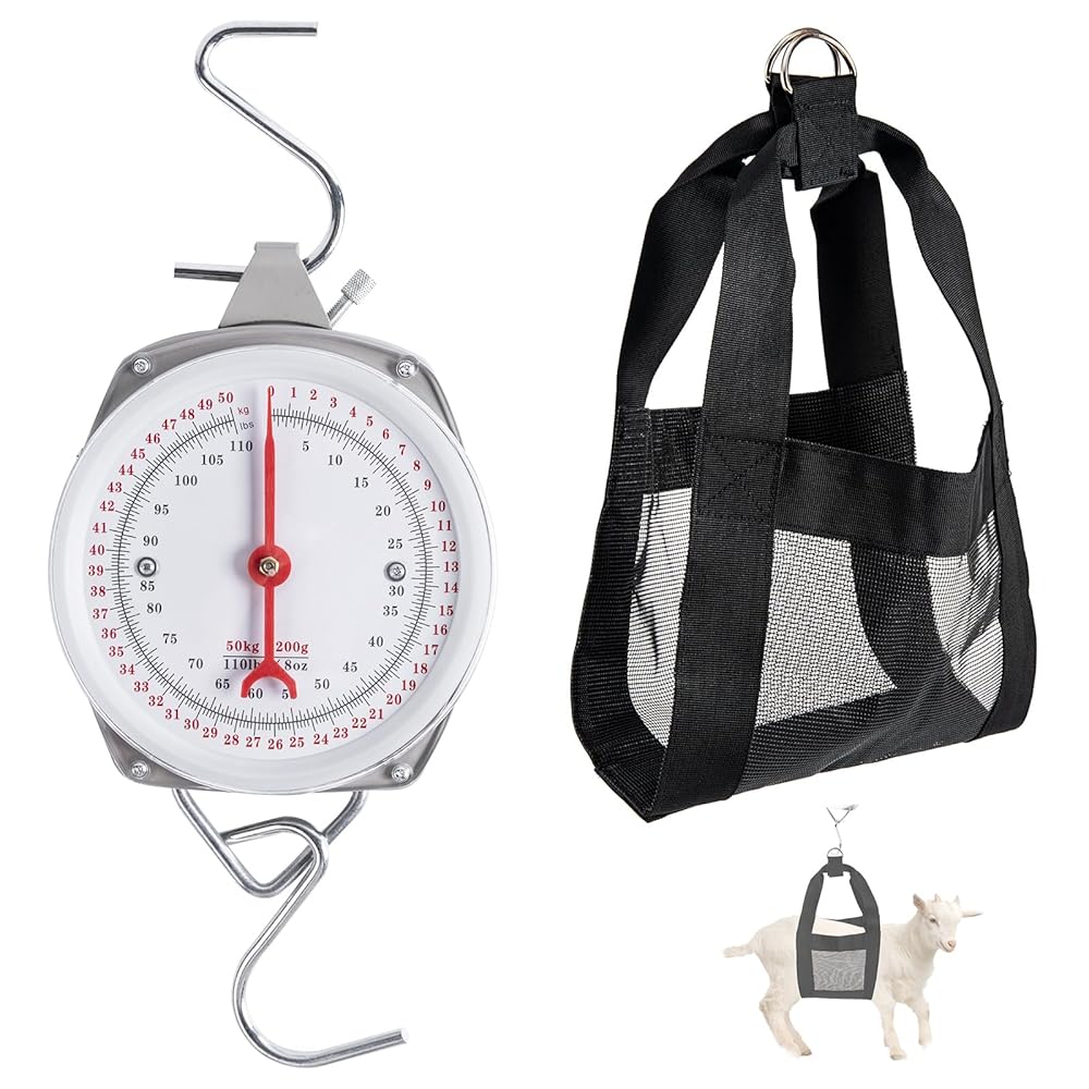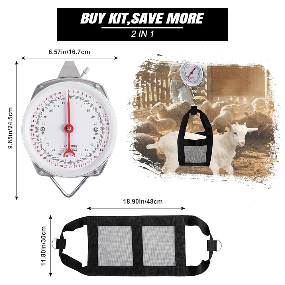 • مجموعة 2 في 1: يأتي الميزان المعلق مع حمالة وزن مصممة خصيصًا للعجول حديثي الولادة والحملان والماعز والحيوانات الصغيرة الأخرى. حمالة الساق مصنوعة من مادة النايلون شديدة التحمل، مما يضمن القوة. تتميز حمالة الوزن بإبزيم حلقي معدني مريح على شكل حرف D لسهولة التعليق على الميزان