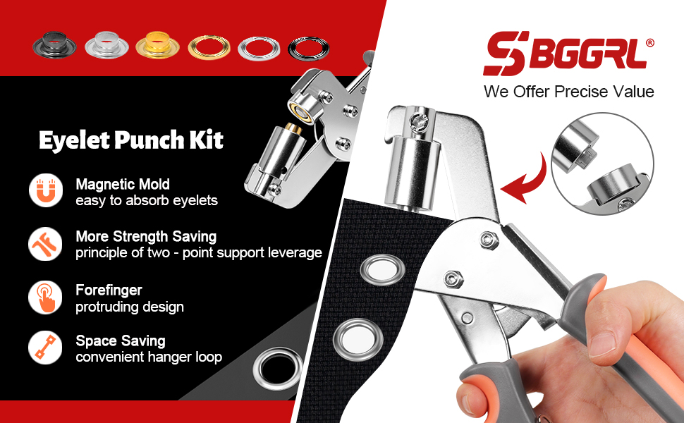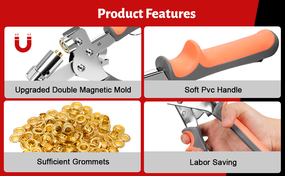 【توافق واسع】 مجموعة الأدوات ذات الحلقة المعدنية مناسبة للاستخدام على اللافتات والخيام والأقمشة والستائر والملابس والحقائب والمزيد! مثالية لمعدات التخييم، وديكورات المناسبات، والأغطية البحرية، والمفروشات، والحرف اليدوية. تعمل على القماش والفينيل والبلاستيك والصفائح المعدنية الرقيقة - رائعة للاستخدام المنزلي أو ورشة العمل أو الاستخدام التجاري. يمكن استخدام مجموعة الأدوات ذات الحلقات المعدنية الخاصة بنا كإصلاح فتحات قماش القنب، أو صانع ثقب الخيمة، أو استبدال حلقات لافتات الفينيل، أو صانع حلقات حامل اللافتات، أو استبدال حلقات لافتة الفينيل. لا يُنصح باستخدامه مع المواد التي يزيد سمكها عن 3 مم، أو الناعمة جدًا، أو الصلبة جدًا، مثل الحرير، وغطاء العريشة الشبكية، والمواد القابلة للتمدد والمتعددة الطبقات