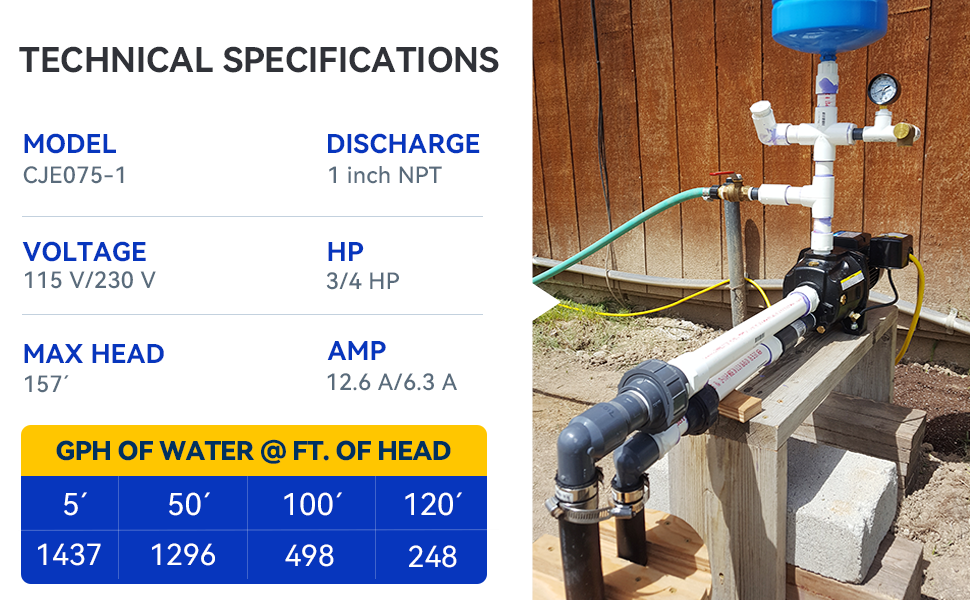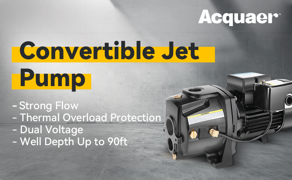 مضخة الآبار القابلة للتحويل: تم تصميم هذه المضخة لآبار الأنابيب الفردية (0-25 قدمًا) أو بئرين الأنابيب (26-90 قدمًا)، بما في ذلك مجموعة أدوات القاذف والقاذف. يمكن للمحرك الكهربائي بقوة 3/4 حصان أن يوفر معدل تدفق عالي مع قوة شفط قوية. كما يمكن استخدامها كمضخات للري أو مضخات لرش العشب
