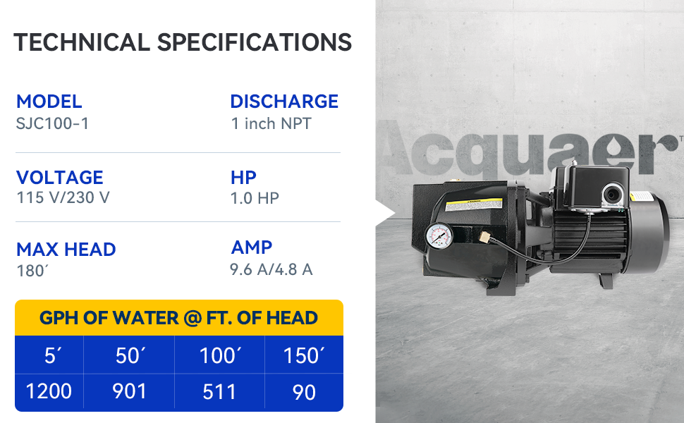 شفط قوي: يمكن للمحرك الكهربائي بقوة 1 حصان أن يوفر الكثير من تدفق المياه مع قوة شفط قوية، وهو مصمم للآبار التي يصل عمقها إلى 25 قدمًا.