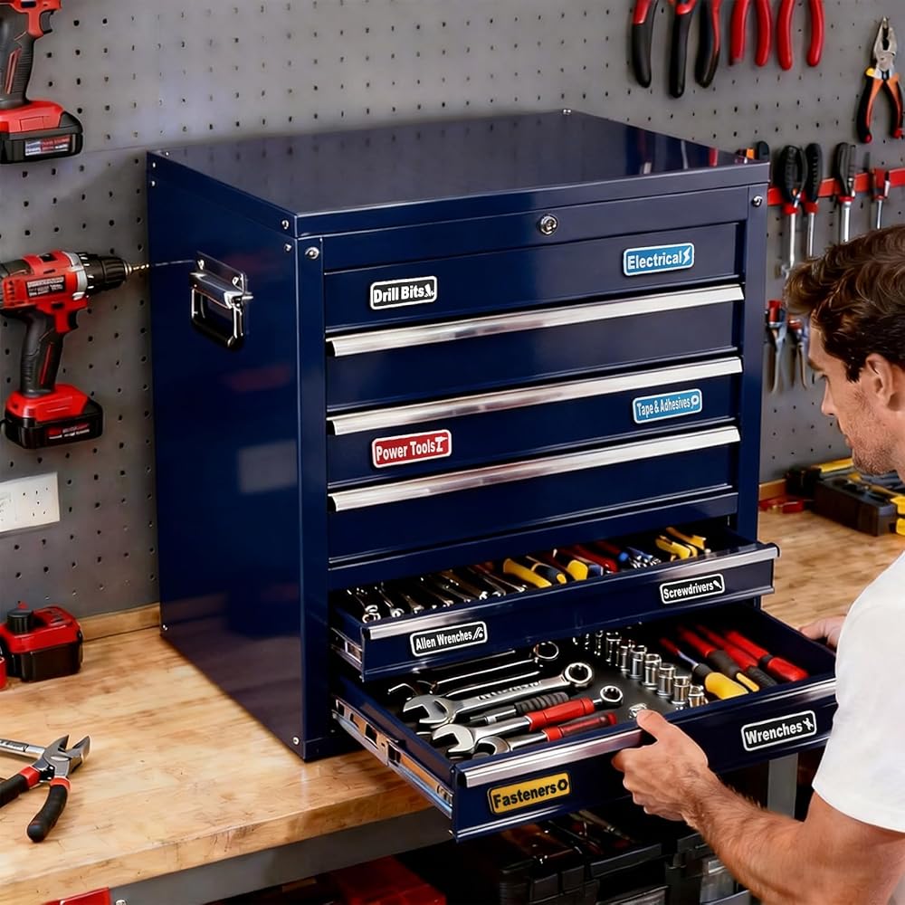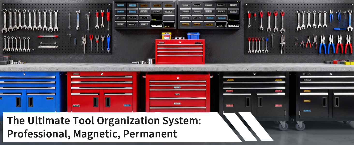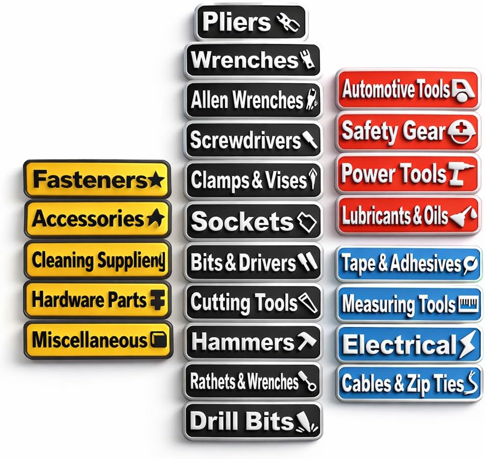 مناسبة لأي مساحة عمل: يمكن استخدام ملصقات صندوق الأدوات المغناطيسية على صناديق الأدوات أو الأدراج أو الخزانات أو عربات الفولاذ أو أي سطح معدني. تعتبر ملحقات صندوق الأدوات هذه مثالية لعشاق الأعمال اليدوية والمحترفين وحتى تنظيم أدوات الفصل الدراسي، مما يوفر الكفاءة والجمال في كل مساحة عمل.