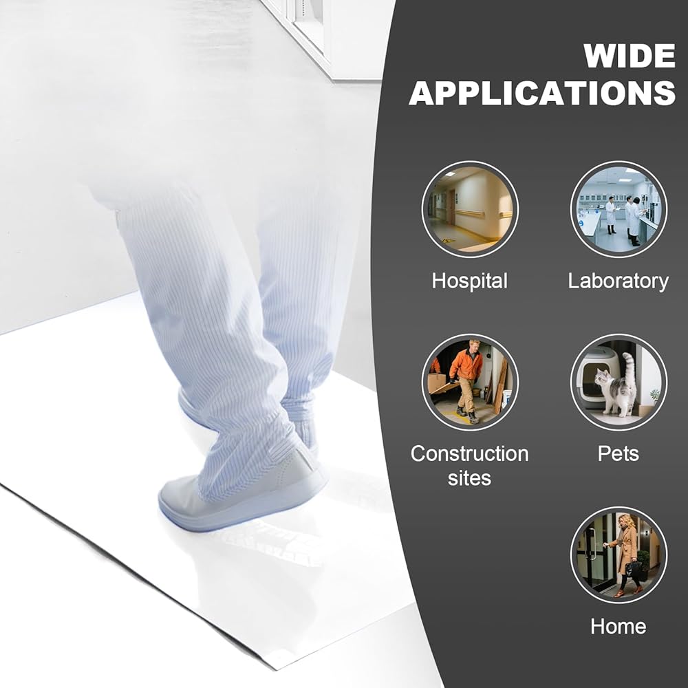 حصيرة أرضية لاصقة بيضاء مقاس 60.96 سم × 91.44 سم (5 عبوات، 150 ورقة، 30 ورقة/عبوة لغرفة الأبحاث والمختبرات وبناء المستشفيات والحيوانات الأليفة والمنزل وصالة الألعاب الرياضية)