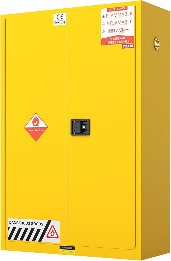 【مصنوعة للطلاء والمذيبات】: خزانة الطلاء هذه مناسبة لتخزين الطلاء والغراء والبنزين والمخفف والكحول وغيرها من الإمدادات القابلة للاشتعال في خزانة تخزين واحدة مخصصة.