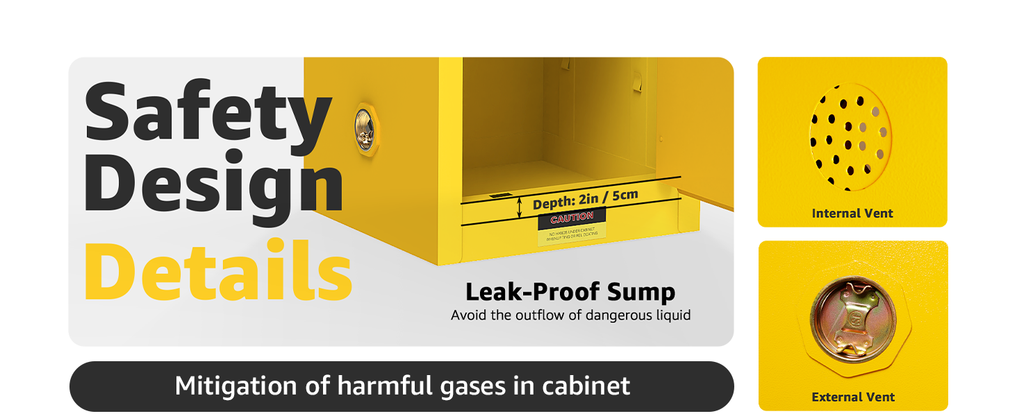• 【تخزين مشرق وهادف】: تحافظ الخزانة الصفراء على السوائل القابلة للاشتعال والمواد الخطرة ذات الصلة في مكان واحد محدد بوضوح لتسهيل التعرف عليها والتخزين المنظم.