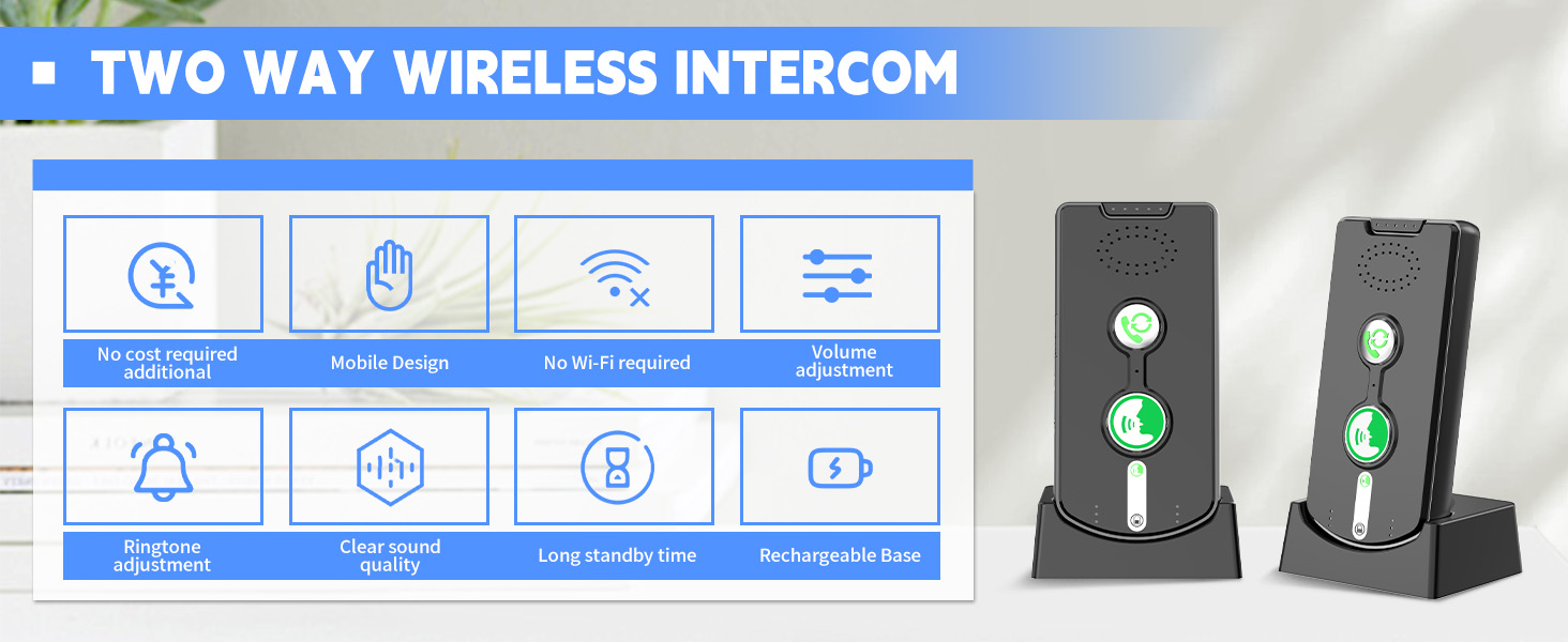 اتصال داخلي لاسلكي قابل لإعادة الشحن: يحتوي كل اتصال داخلي على بطارية مدمجة بقوة 1000 مللي أمبير في الساعة، ويأتي مع قاعدة شحن خاصة به. استمتع بالحرية اللاسلكية للاستخدام المحمول في أي مكان، أو أبقه مثبتًا بشكل آمن على قاعدة الشحن الخاصة به للحصول على طاقة مستمرة واتصال متواصل