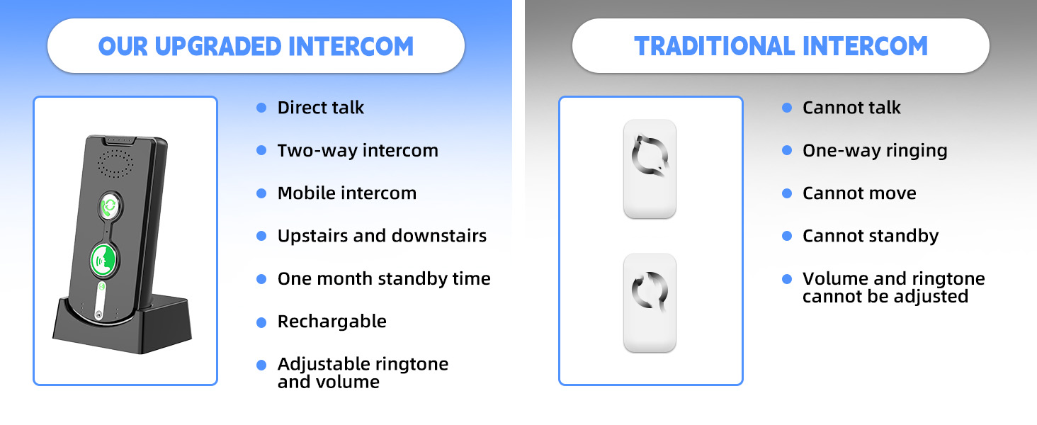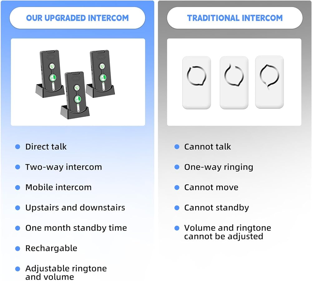 سهل الاستخدام: مع قناتين بسيطتين فقط (A & B)، يعمل نظام الاتصال الداخلي هذا على تبسيط الاتصال متعدد الأرضيات. يمكنك التبديل بسهولة بين القنوات لإجراء محادثات واضحة تمامًا وخالية من التداخل. ويمكن تعديل نغمة الرنين الثلاثة و5 مستويات صوت
