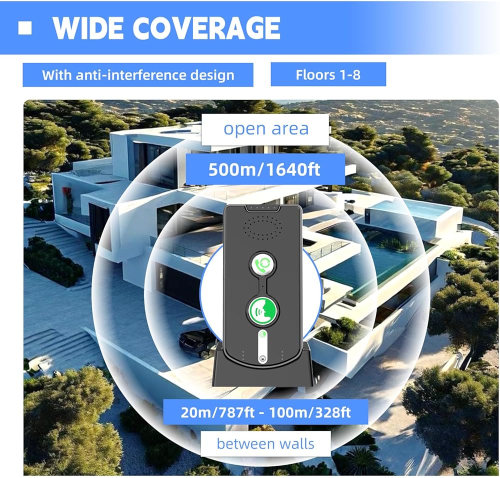 وقت استعداد طويل 30 يومًا (ترقية 2025) واتصالات طويلة المدى: يصل نطاق مكبر الصوت الداخلي ثنائي الاتجاه هذا إلى 500 متر في منطقة مفتوحة و1-8 طوابق بين الجدران. يعمل نظام الاتصال ثنائي الاتجاه بشكل مثالي من أجل تفاعلات سريعة وواضحة