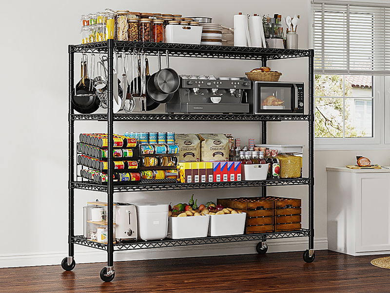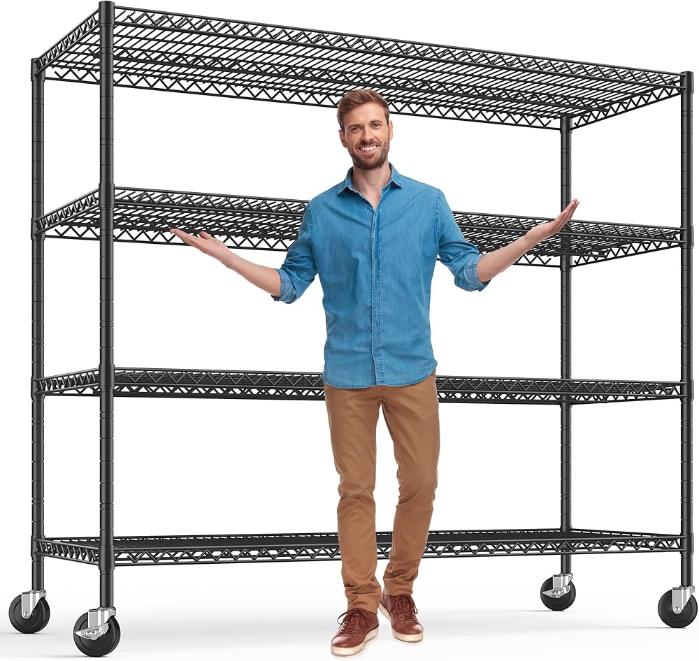 • 【وحدة رفوف سلكية كبيرة مع مساحة تخزين إضافية】الحجم الإجمالي 75.6 بوصة ارتفاع × 55.5 بوصة عرض × 24 بوصة عمق، يوفر رف التخزين الكبير هذا مساحة تخزين أكبر من الأرفف القياسية. تصميم الأرفف المفتوحة ذو 4 طبقات يحافظ على العناصر مرئية ويمكن الوصول إليها ومنظمة بأناقة.