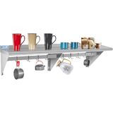 هيكل متين**للتأكد من أن هذا الرف يمكن أن يتحمل الاستخدام في مؤسستك المزدحمة، فهو مصنوع من زوايا ملحومة متينة ودعامات دعم، بحيث يبقى الرف في مكانه. سهلة التنظيف بقطعة قماش وورق