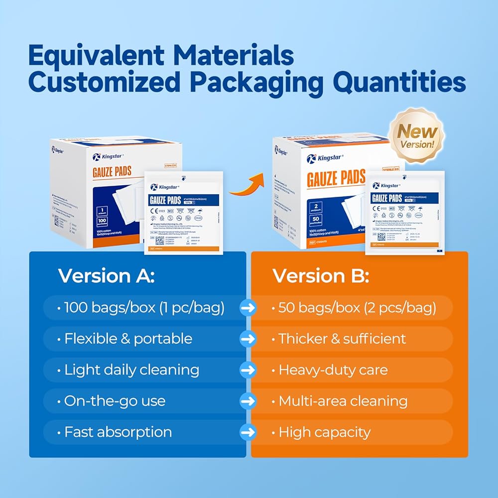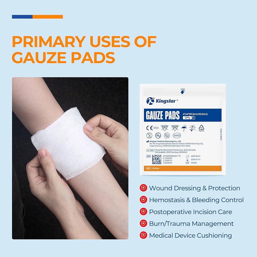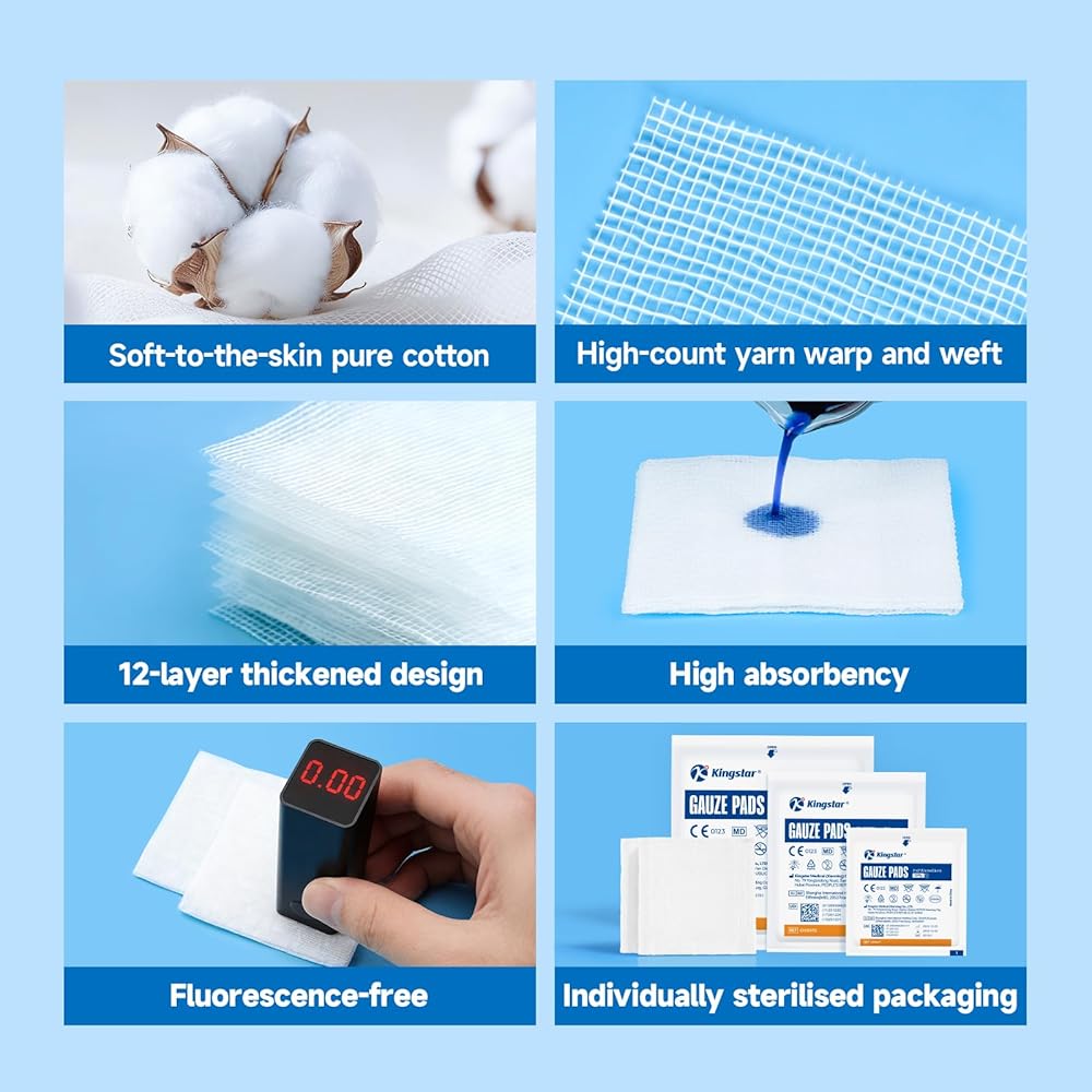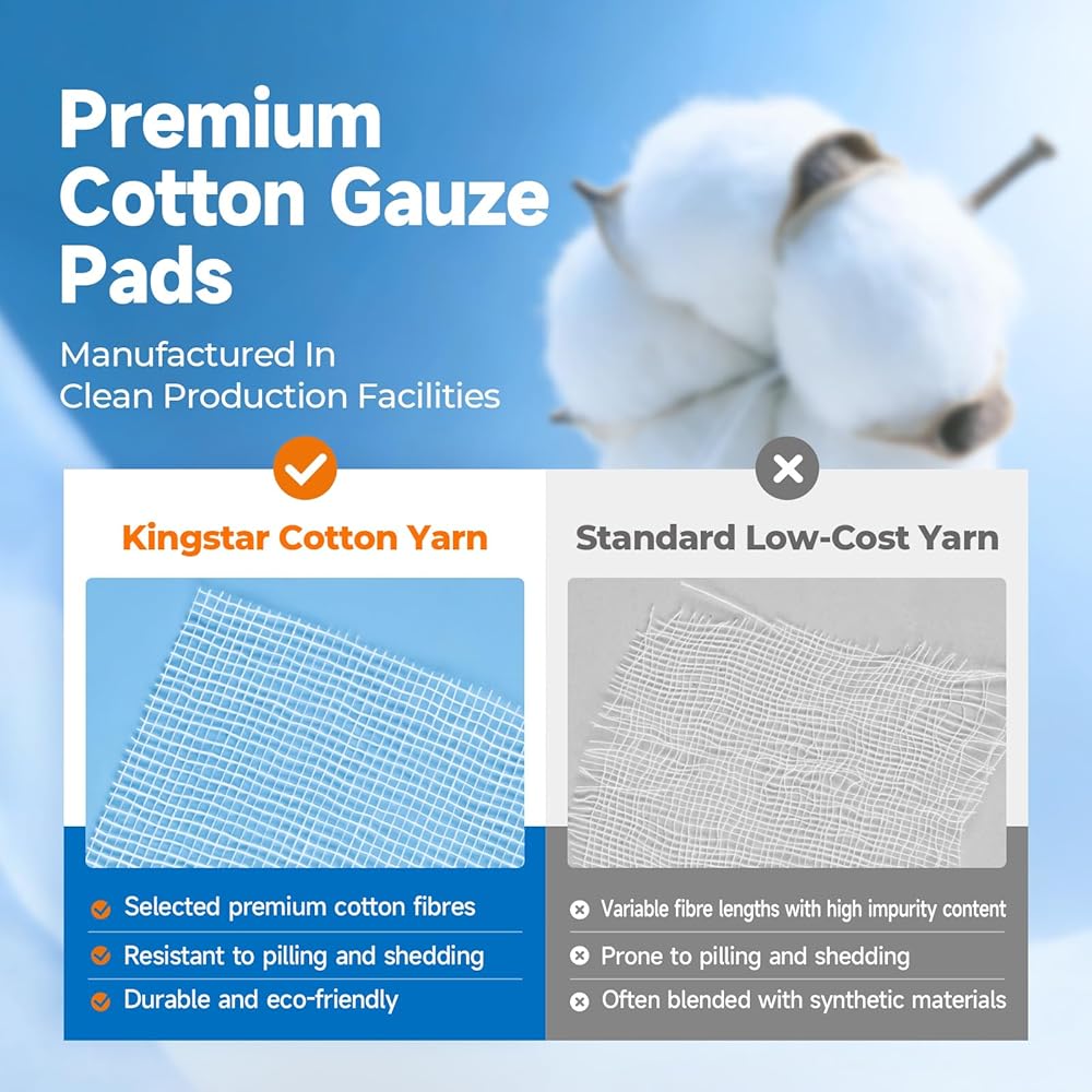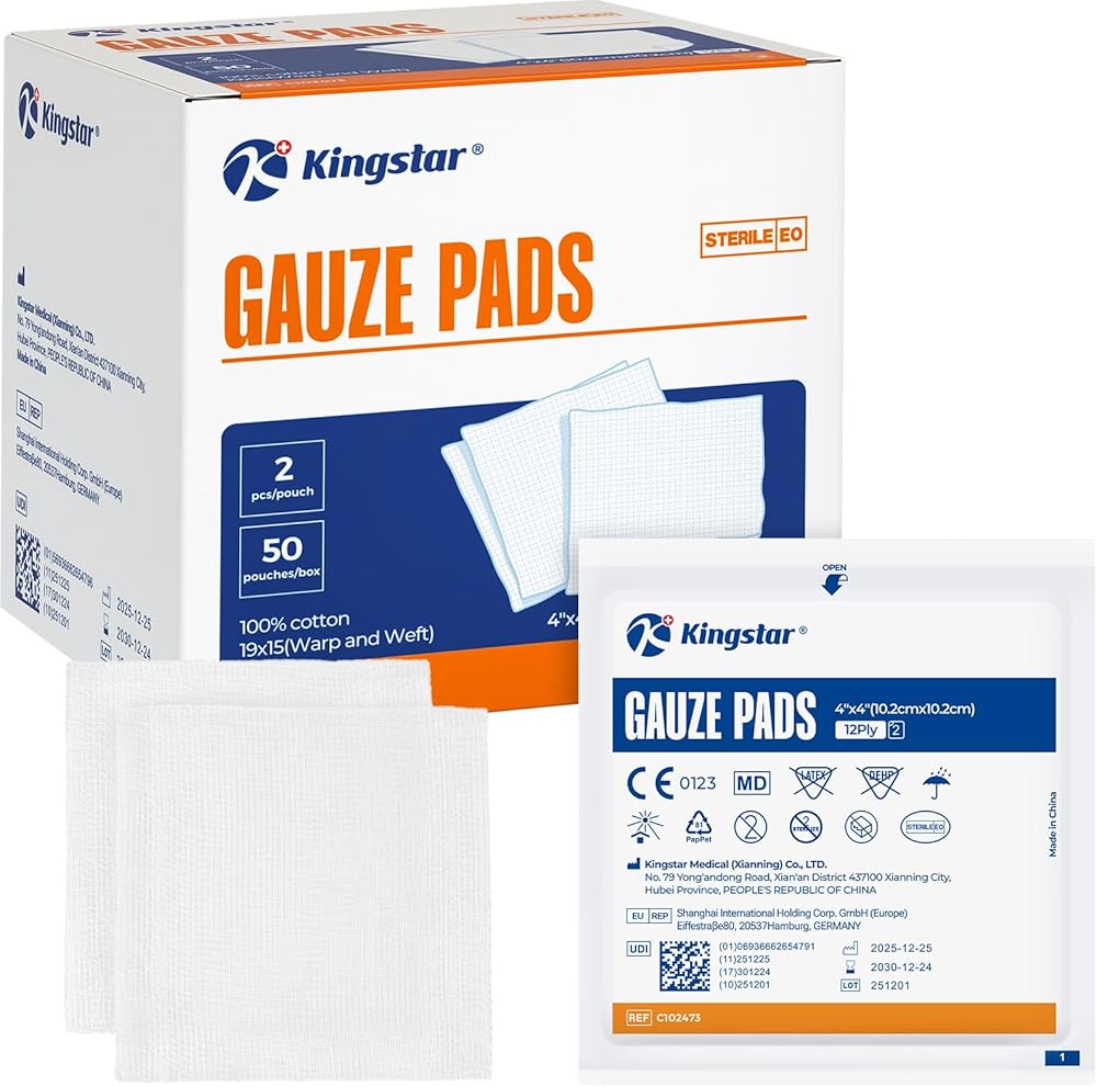معقمة وصحية، وجاهزة للاستخدام: يتم تعقيم وسادات الشاش هذه بدقة باستخدام طريقة EO (أكسيد الإيثيلين)، مما يضمن الحصول على منتج معقم وصحي في كل عبوة فردية مكونة من قطعتين. مصنوعة من القطن الخالص، فهي ناعمة ومسامية وعالية الامتصاص، دون إضافة أي صمغ أو مواد كيميائية مهيجة، لذلك يمكنك استخدامها براحة بال تامة.