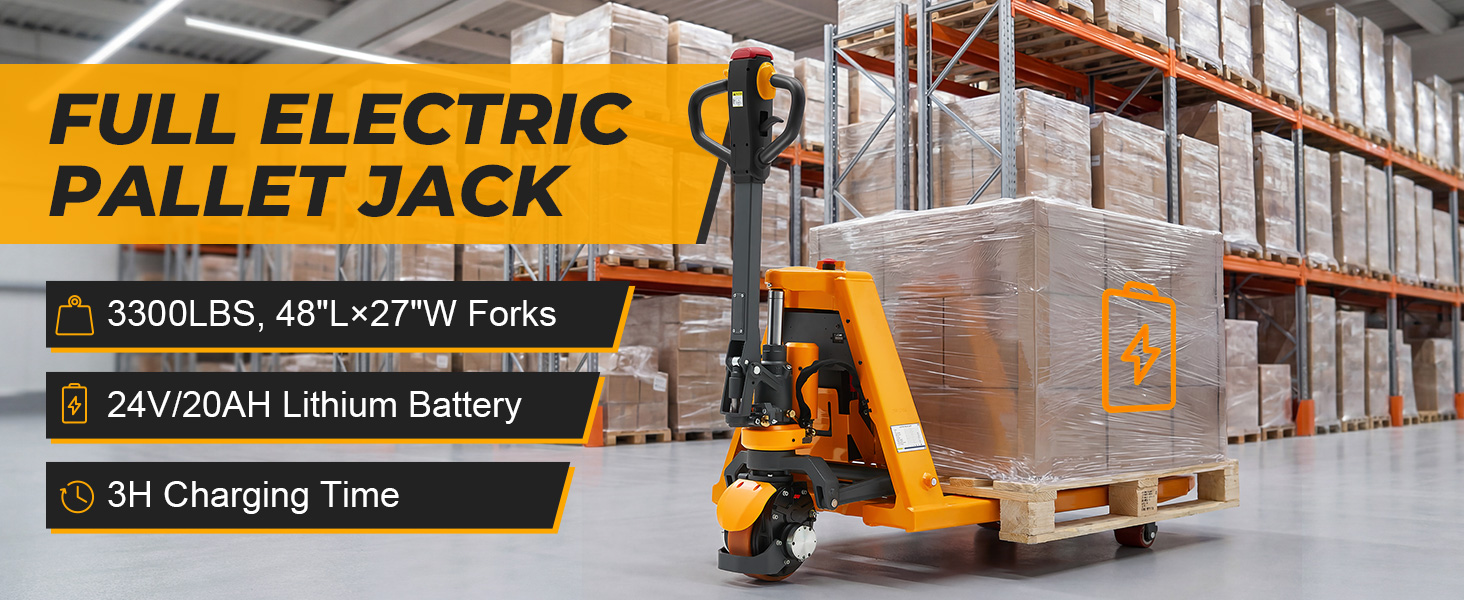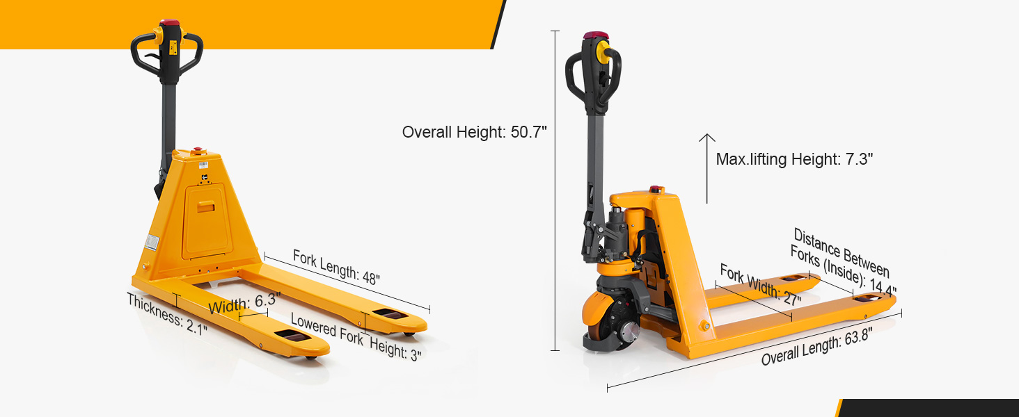 رفع فعال: بسعة 3300 رطل، وارتفاع منخفض للشوكة 3 بوصات، وارتفاع رفع 7.3 بوصات، وشوكات بطول 48 بوصة × عرض 27 بوصة، تعمل شاحنة البليت هذه على تبسيط مهام التعامل مع المواد بسهولة