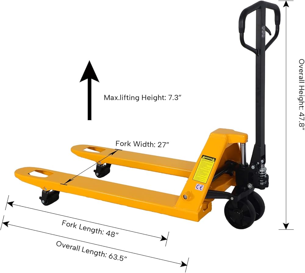 APOLLOLIFT Pallet Jack، سعة 5500 رطل لشاحنة البليت، شاحنات البليت اليدوية القياسية، شاحنات البليت 48 بوصة Lx27 W حجم الشوكة للمستودع، المصنع
