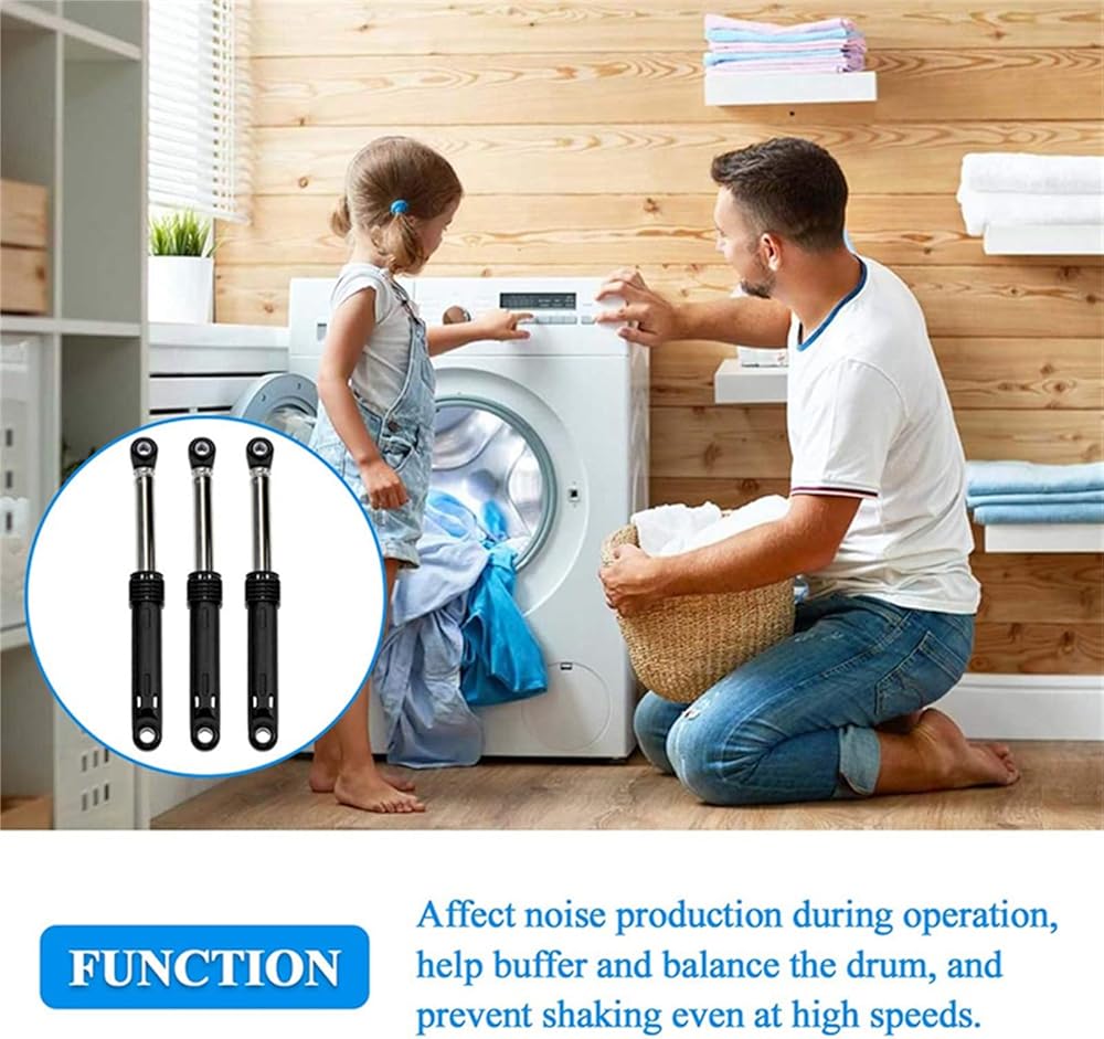 • IMPROVED WASHING MACHINE PERFORMANCE – This washing machine shock absorber kit includes 3 shock absorbers and 6 mounting pins, effectively reducing noise, vibration, and shaking during operation. Helps maintain drum balance and prevents instability, especially during high-speed cycles. Ideal for fixing erratic or noisy washing machine issues.