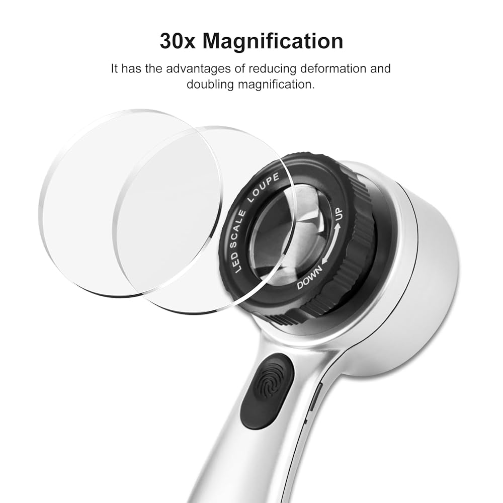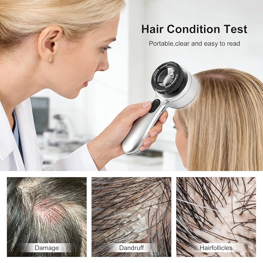 تكبير عالي الوضوح 30 مرة: مزود بعدسات زجاجية بصرية مزدوجة عالية الدقة 35 مم، يوفر هذا المكبر المحمول تكبيرًا 30 مرة لمراقبة واضحة ومفصلة لملمس الجلد وحالة فروة الرأس وبصيلات الشعر، مما يجعل من السهل مراقبة صحة بشرتك وفروة رأسك.