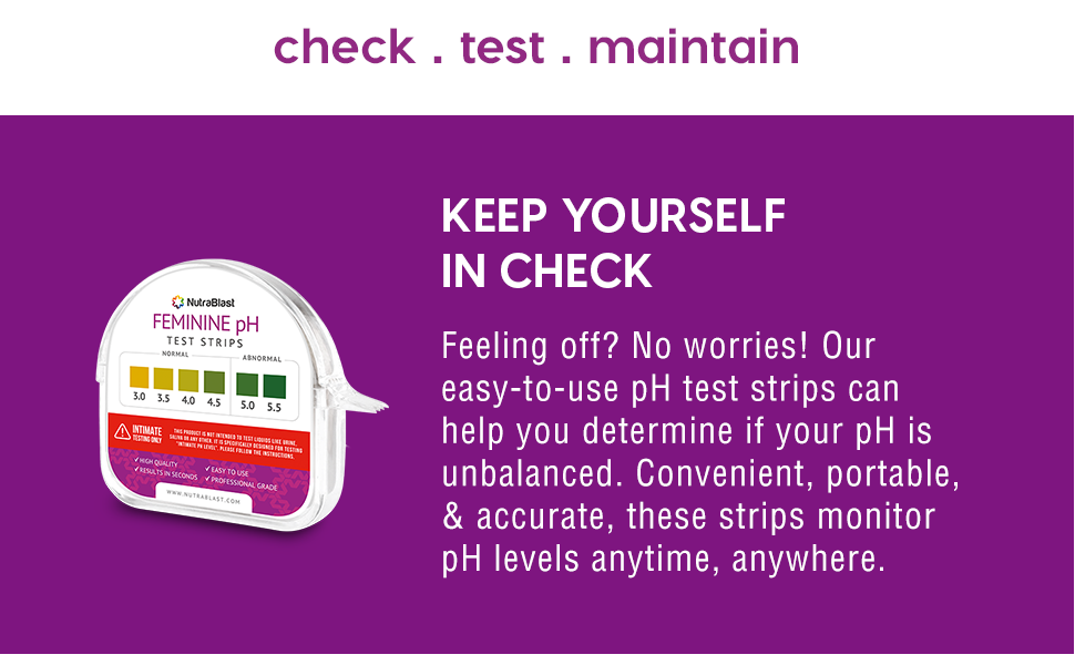 إليك كيف يمكنك مراقبة توازن المهبل وموازنته واستعادته! تم تصميم شرائط اختبار درجة الحموضة NutraBlast لتحديد درجة الحموضة المهبلية بدقة.