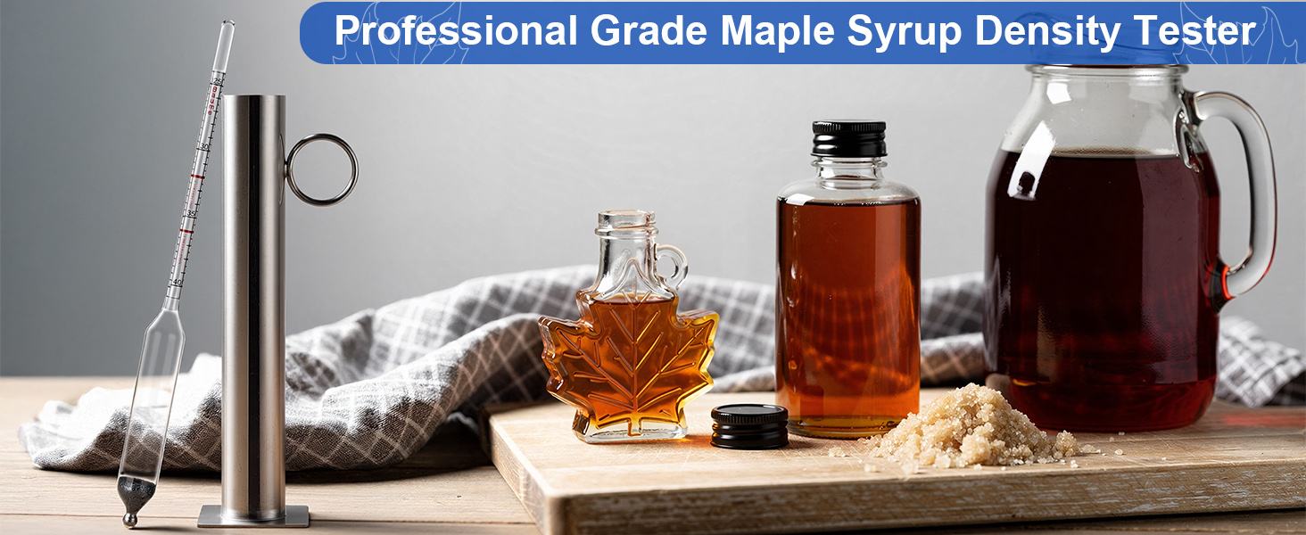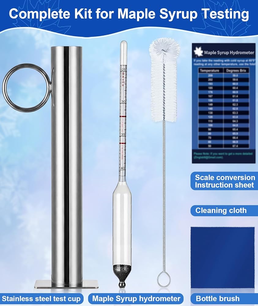 【مجموعة كاملة من أكواب اختبار مقياس كثافة شراب القيقب】تتضمن مجموعة القيقب الكاملة مقياس كثافة السوائل من بريكس لصنع شراب القيقب، وكوب اختبار من الفولاذ المقاوم للصدأ، وفرشاة تنظيف من النايلون، وقماش من الألياف الدقيقة، ودليل تعليمات مع طاولة تحويل. مثالية للمبتدئين في شراب القيقب وصانعي شراب القيقب.
