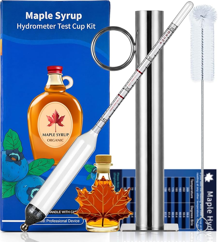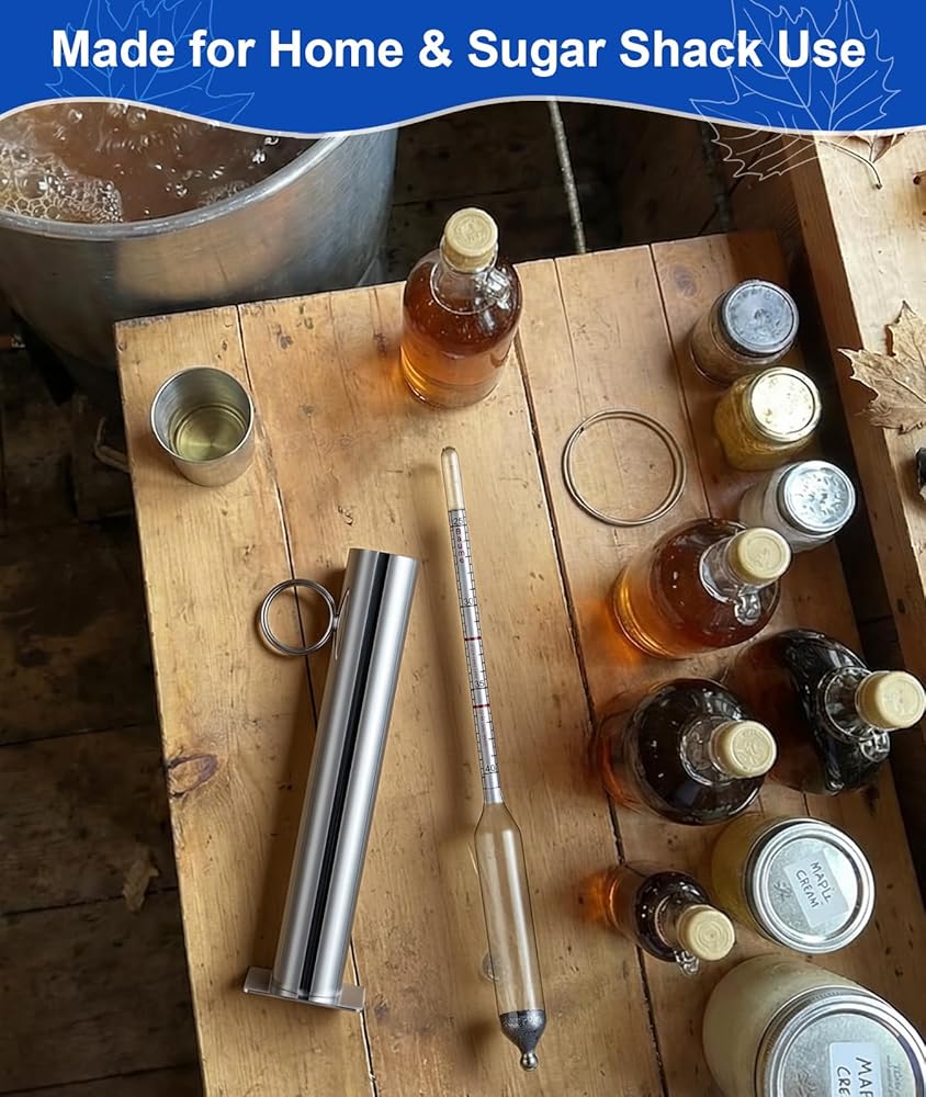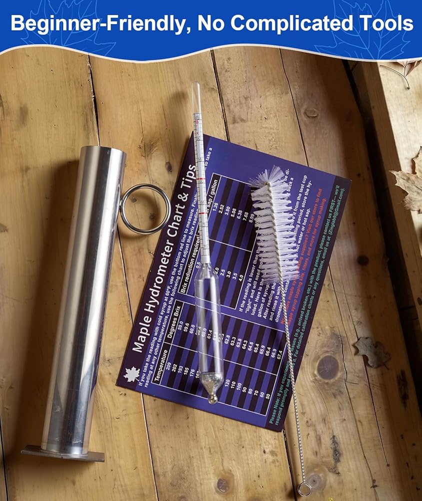 مجموعة مقياس كثافة شراب القيقب، مقياس كثافة السوائل من عصير القيقب مع كوب اختبار شراب من الفولاذ المقاوم للصدأ، أجهزة قياس كثافة السوائل من بركس لصنع عصارة القيقب، مقياس بوم وبريكس، تتضمن فرشاة وقماش لمستلزمات صنع شراب القيقب