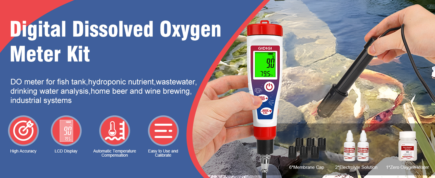 تعويض درجة الحرارة التلقائي: مجموعة اختبار الأكسجين المذاب GIDIGI مع وظيفة ATC، قيم الاختبار أكثر استقرارًا. يمكنك بسهولة الحصول على محتوى أكسجين دقيق في المحلول. يتم استخدام معدات مراقبة الأكسجين الاحترافية في أحواض كوي، وتحليل مياه الشرب، وتخمير البيرة والنبيذ المنزلي، والأنظمة الصناعية، والمغذيات المائية، وخزان الأسماك، ومعالجة مياه الصرف الصحي، ومعالجة مياه الصرف الصحي، والمختبرات، وأبحاث التعليم وغيرها من المجالات.