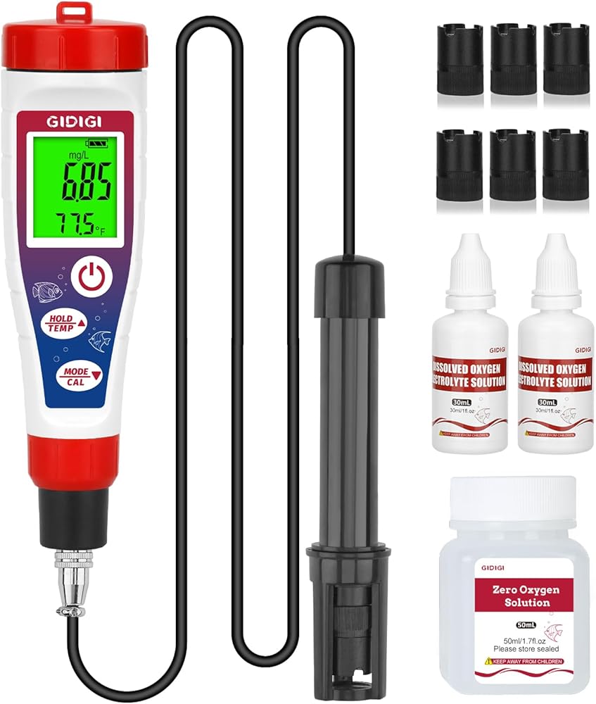 مجموعة أدوات قياس الأكسجين المذاب الرقمية مع كابل كهربائي بطول 4.92 قدم: جهاز اختبار الأكسجين المذاب من GIDIGI مع كابل كهربائي بطول 1.5 متر. باستخدام مجموعة اختبار الأكسجين المذاب، يمكنك اختبار محتوى الأكسجين في المياه العميقة وتجنب مشكلة عدم تمكن القطب الكهربائي من لمس الماء بسبب المسافة. إنها مريحة جدًا للحمل ومناسبة جدًا لقياس جودة المياه في الهواء الطلق والمراقبة البيئية (البحيرات والأنهار والبرك الكبيرة وتربية الأحياء المائية).