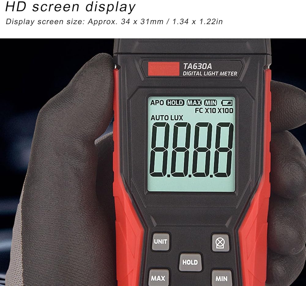[Alarm Function]: Easily set upper and lower light limits; alerts with a red backlight when thresholds are exceeded, helping maintain optimal lighting conditions.