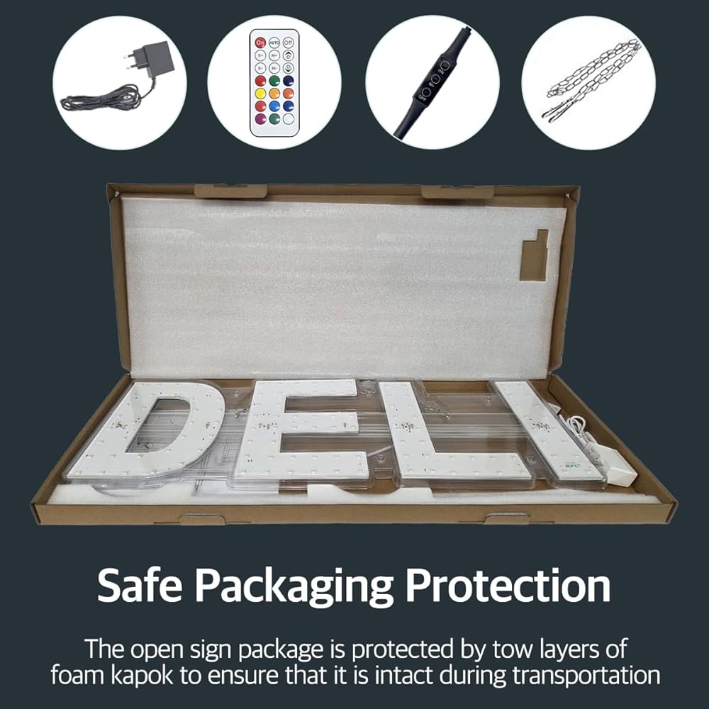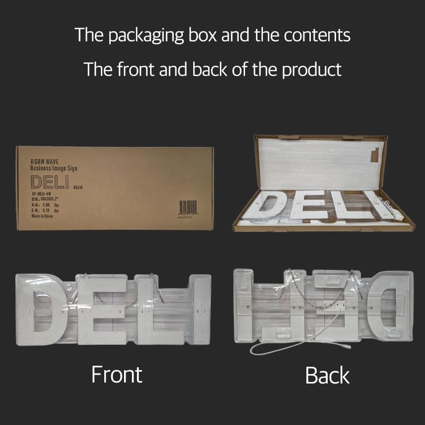 ✨ Transform Your Storefront with EPL Premium RGBW LED Signage! ✨ Make a bold statement with our advanced 4G Full-color technology. This "DELI" sign features a beautiful White RGBW Wave effect that ensures your business is the most attractive spot on the block. 🚀 Key Features ✅ Advanced 4G Full-color Changes: Experience vibrant and smooth color transitions that capture attention from every angle. ✅ Maximum Visibility: Engineered to be "Super Bright," making your message clearly visible even in broad daylight or through tinted windows. ✅ Full Remote Control: Effortlessly change colors, modes, and brightness levels with the included wireless remote. ✅ Elegant Wave Design: The modern wave-style lighting adds a professional and sophisticated touch to your Deli or Cafe. ✅ Durable & Energy Efficient: High-quality LED components designed for 24/7 operation with minimal power consumption. 🚀 Specifications ✅ Text: DELI (White RGBW Wave) ✅ Technology: 4G (Full-color Changes Mode) ✅ Size: 10" x 28" (Inches) ✅ Inclusions: LED Sign, Remote Control, Power Adapter Upgrade your business presence today with the unmatched quality of EPL!