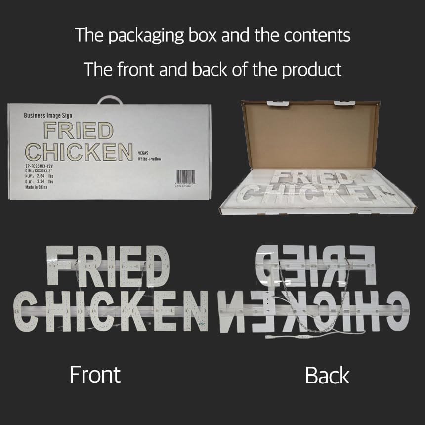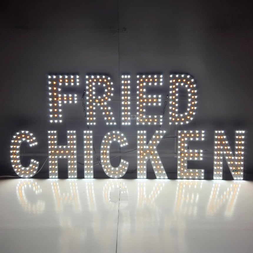 EPL FRIED CHICKEN YELLOW، علامة وامضة LED 2G، لافتة لافتة للنظر، فائقة السطوع، 13 بوصة × 30 بوصة، جهاز التحكم عن بعد وعرض ديكور نافذة المطعم - الطعام