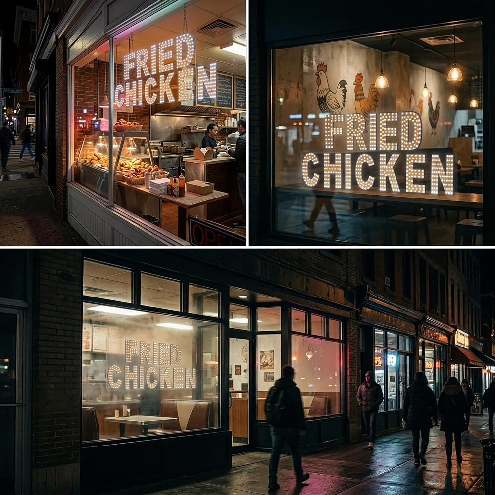 - حجم مثالي للنوافذ: تم تحسين الأبعاد 13 × 30 بوصة لنوافذ واجهة المتجر القياسية، مما يوفر مظهرًا احترافيًا لأي مطعم أو كشك طعام.