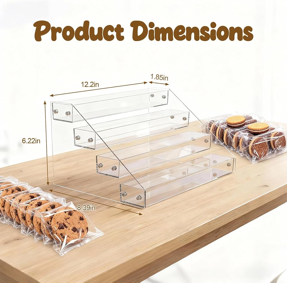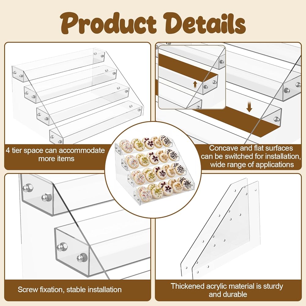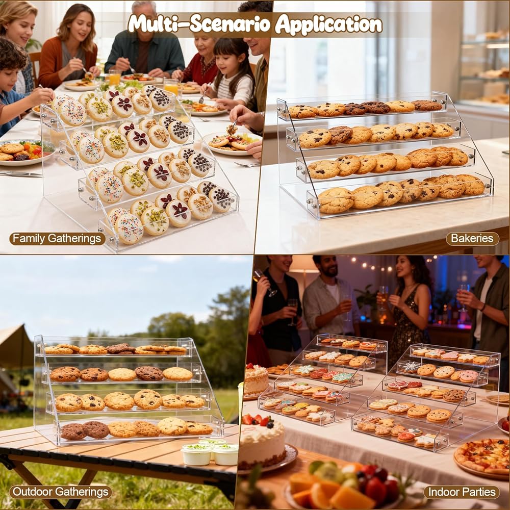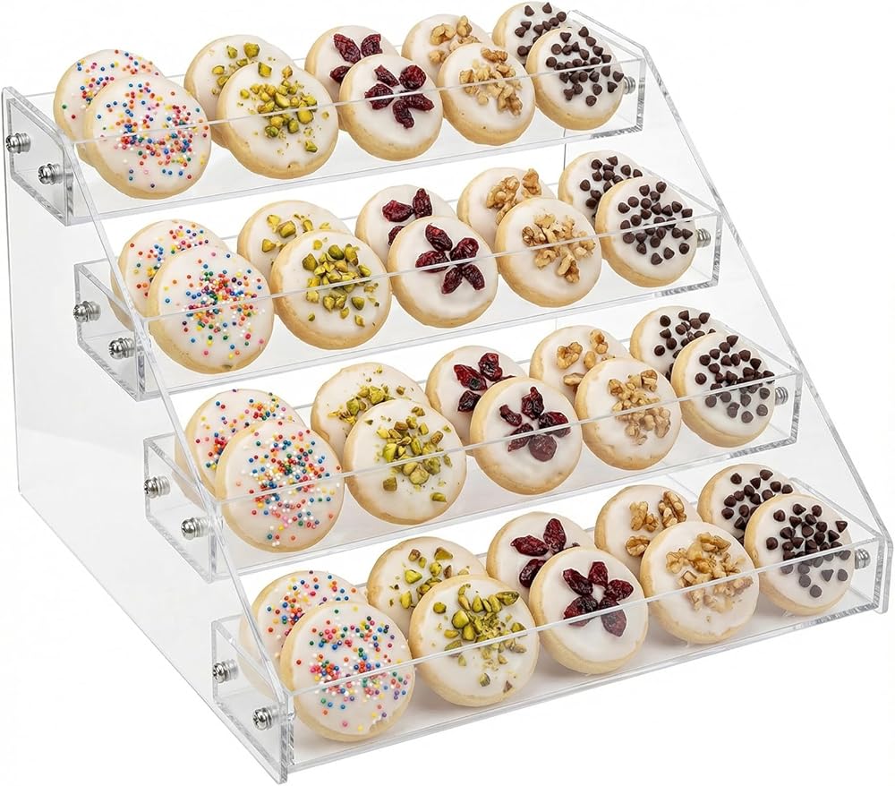 حامل عرض ملفات تعريف الارتباط من 4 طبقات لعرض ملفات تعريف الارتباط، مناسب للخبازين والبائعين والحفلات والمعارض الحرفية وأكشاك السوق، حامل عرض ملفات تعريف الارتباط ذو طبقات من الأكريليك الشفاف ينطبق على الكعك وعرض الحلوى