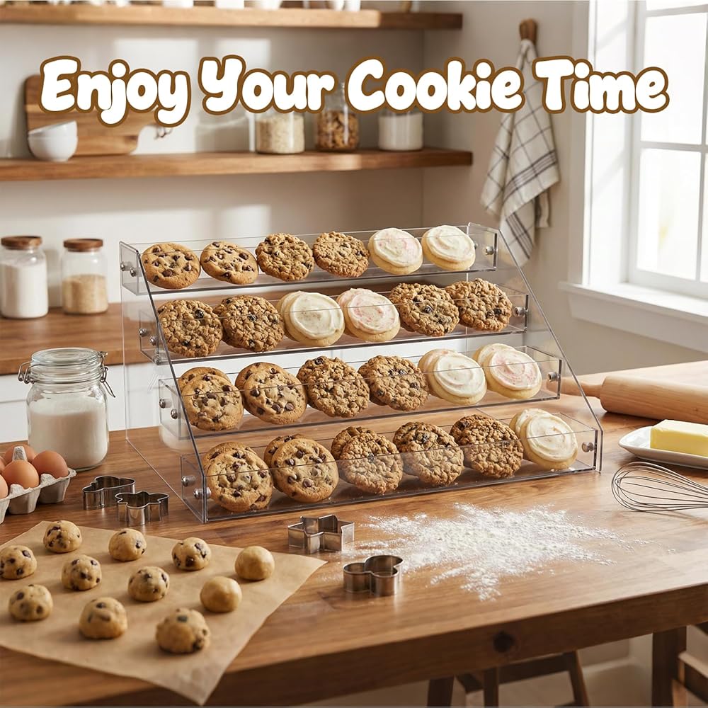 Artisan Look and Transparent Design: The crystal clear, fully transparent design provides an unobstructed 360° view of your cookies and dessert. This cookie stand complements your handmade baked goods and reflects the care and craftsmanship you put into every baking batch.