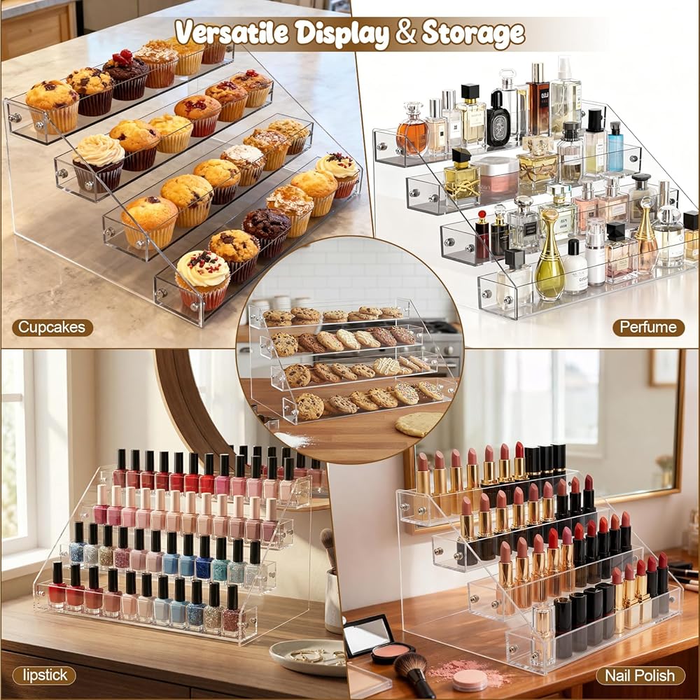 Multi-Functional Uses: In addition to being suitable for cookie storage and display, the stand is also perfect for displaying breads, donuts, and pastries. The stand is also great to be used for display collectibles (like miniatures or car models), organize cosmetics, and a perfume organizer.