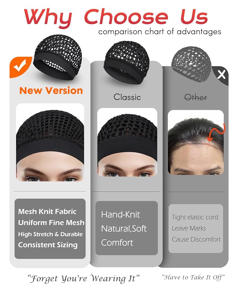 • 【Uniform Stretchy Knit Mesh - Breathable & Consistent】The cap is now made from a uniform, stretchy knit mesh fabric. Unlike previous handmade versions, this ensures consistent size, softness, and elasticity, allowing your scalp to breathe freely while preventing overheating