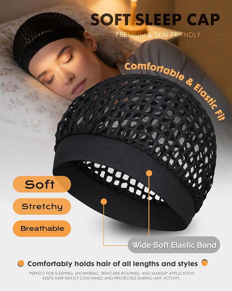 • 【Secure & Stretch Fit for All Hair Types】The combination of the soft knit edge and the uniform stretchy knit body provides a secure fit that adapts to various head sizes. It holds your hair wrap net firmly in place throughout the night without slipping, ensuring your hair stays perfectly wrapped