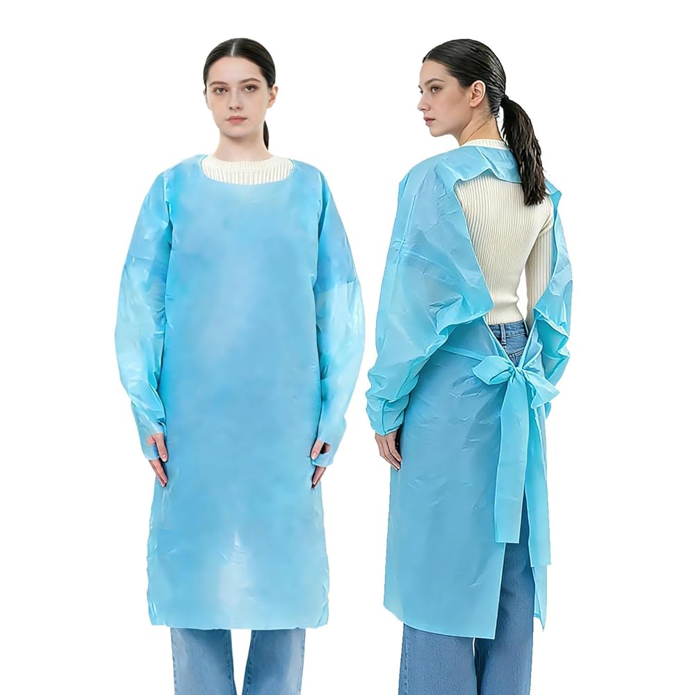 Premium Material: The disposable isolation gowns is made from high grade CPE and PE material, durable and long lasting for wearing.