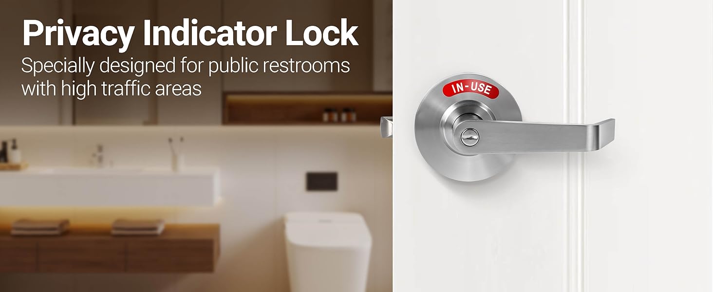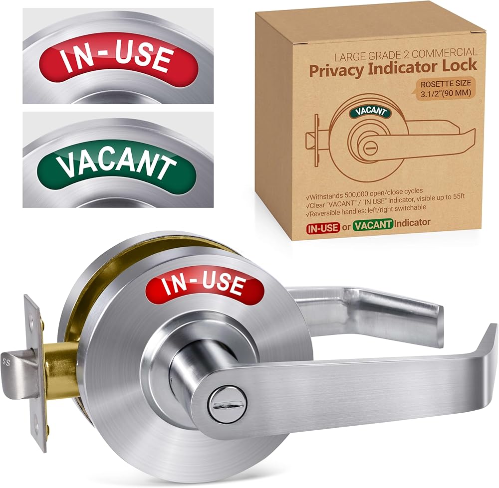 قفل باب الحمام من الدرجة التجارية - قفل مؤشر الخصوصية شاغر أو قيد الاستخدام، مقبض باب مشغول يسار يمين قفل ذراع الحمام القابل للعكس مثالي للمكتب والمطاعم والمستشفيات (الكروم الساتان)