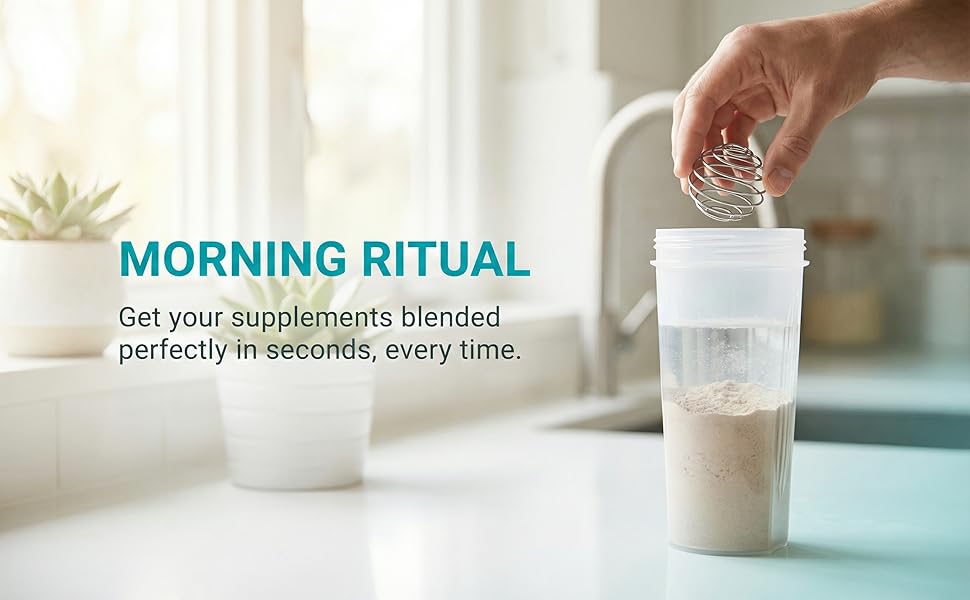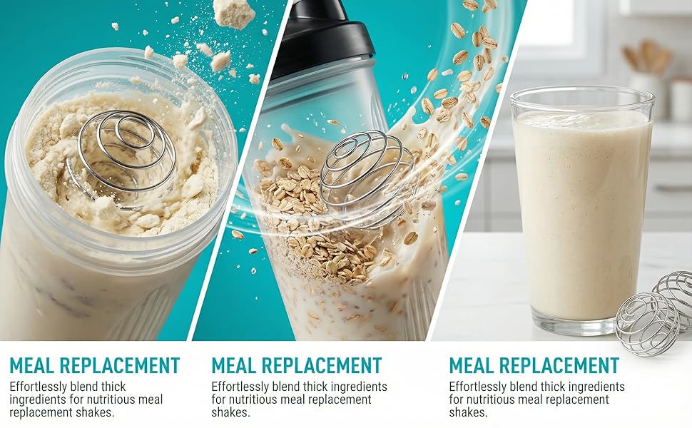 • 【يساعد على خلط مسحوق البروتين بشكل أكثر سلاسة】 يساعد تصميم الخفق السلكي على تفتيت الكتل للحصول على مخفوق أكثر سلاسة - رائع لمسحوق البروتين واستبدال الوجبات والمكملات الغذائية.