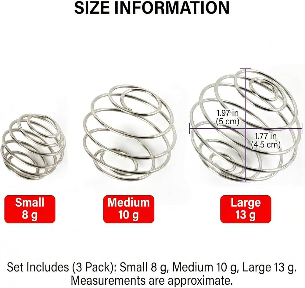 كرة شيكر بديلة من الفولاذ المقاوم للصدأ، 3 عبوات، كرات خلط سلكية لزجاجات شيكر البروتين، كرات خلاط زجاجات الخلاط في 3 أحجام لمسحوق البروتين الناعم والمكملات الغذائية