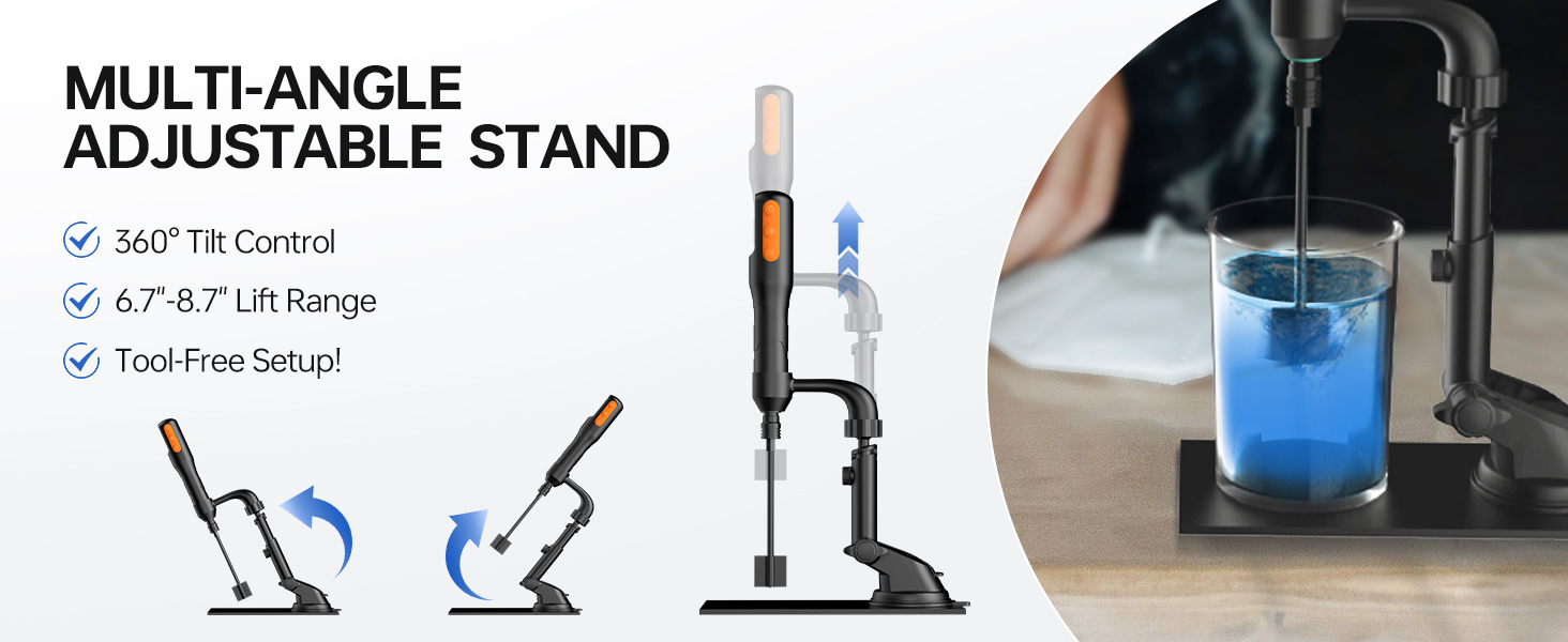 موفر اليد: قم بالتحريك تلقائيًا دون الإمساك به، وتجنب إجهاد مفاصل اليد بشكل فعال، وتوفير المزيد من الوقت. مناسبة للراتنج والسيليكون وخلط الطلاء وصناعة الصابون