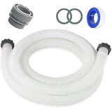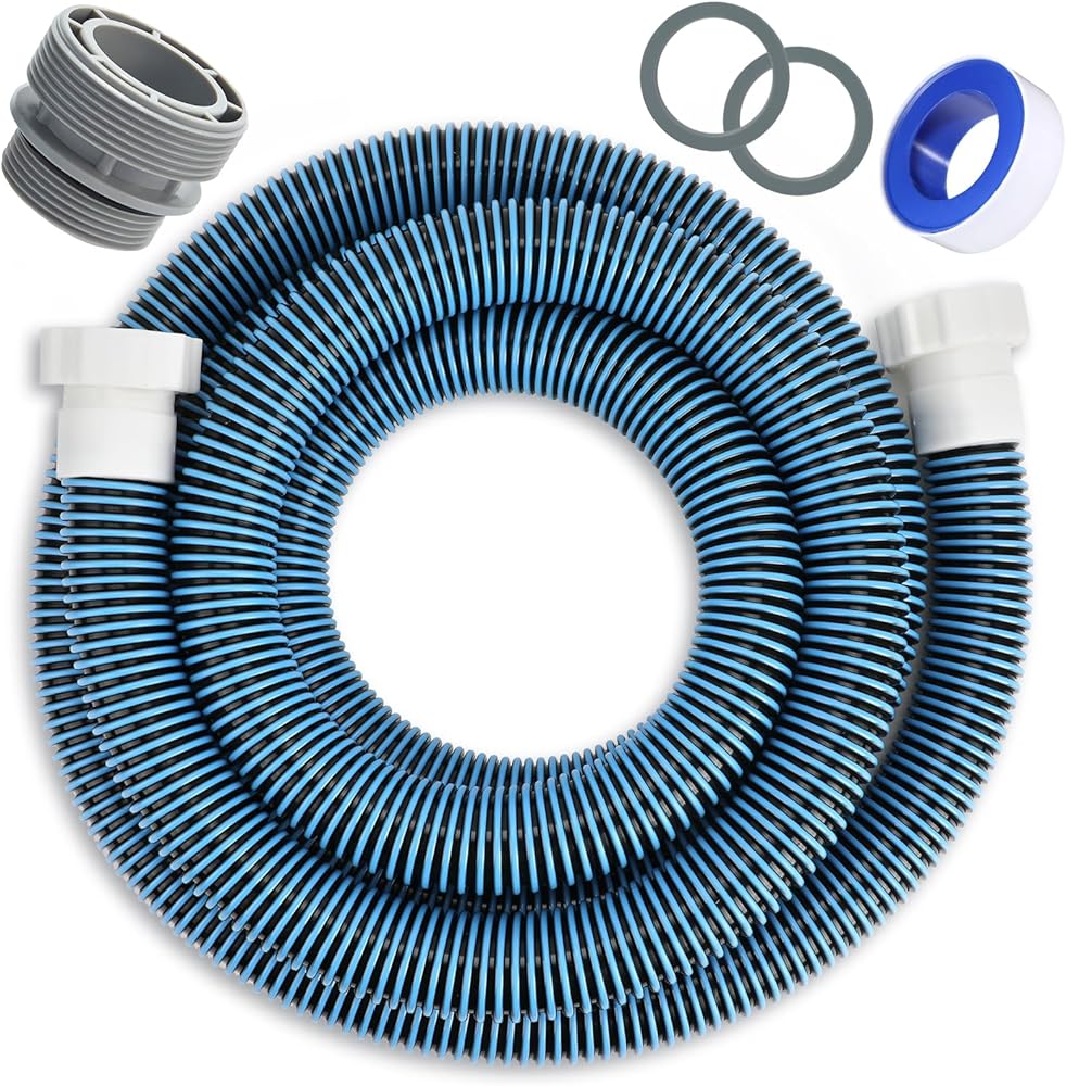 Pool Professional Hose: The package contains 1 blue-black pool pump replacement hoses, each with a diameter of 1.5 inches and a length of 14.76 feet. Above ground pools replacement hose comes with 1 adapter. Included is one roll of Teflon tape. Pool hose replacement kit are are excellent helpers for pool cleaning