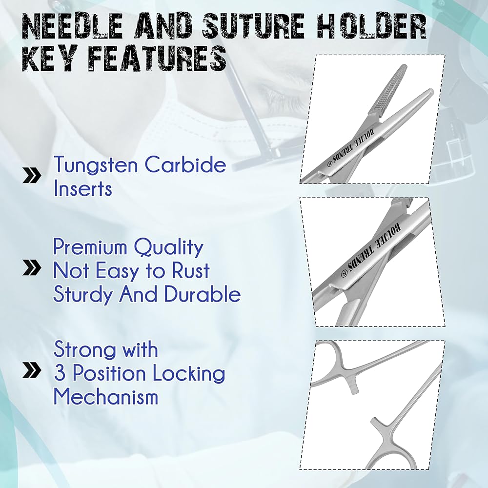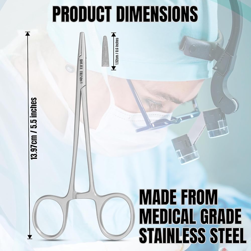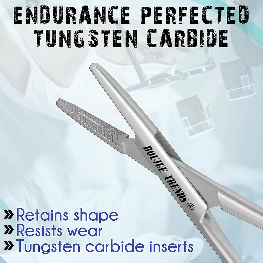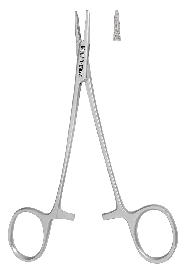 BOUJEE TRENDS Premium Surgical Needle Holder – Precision Crafted for Medical Professionals Product Description: The BOUJEE TRENDS Needle Holder is a high-performance surgical instrument designed for precision, durability, and ergonomic comfort. Engineered from premium medical-grade stainless steel, it ensures superior corrosion resistance and long-lasting reliability in clinical environments. Key Features: ✔ Tungsten Carbide Inserts – Provides exceptional grip strength, enhanced durability, and sharp precision for flawless suturing. ✔ Medical-Grade Stainless Steel – Rust-proof, autoclavable, and compliant with hospital sterilization standards. ✔ Ergonomic Design – 6-inch length with non-slip finger grips for reduced hand fatigue and optimal control. ✔ Secure Locking Mechanism – Ensures firm, stable closure during procedures for safe and accurate performance. ✔ Smooth, Polished Finish – Easy to clean, stain-resistant, and aesthetically refined for professional use. Ideal For: Surgeons, Nurses & Medical Practitioners Veterinary Clinics & Dental Professionals Medical & Nursing Students Tattoo Artists & Aesthetic Practitioners BOUJEE TRENDS Quality Assurance: Every instrument undergoes strict quality control to guarantee peak performance and customer satisfaction. 🔹 Have questions or concerns? Contact us via Amazon Messages—we're committed to prompt resolutions and your complete satisfaction. Elevate your surgical precision with BOUJEE TRENDS—where excellence meets reliability.
