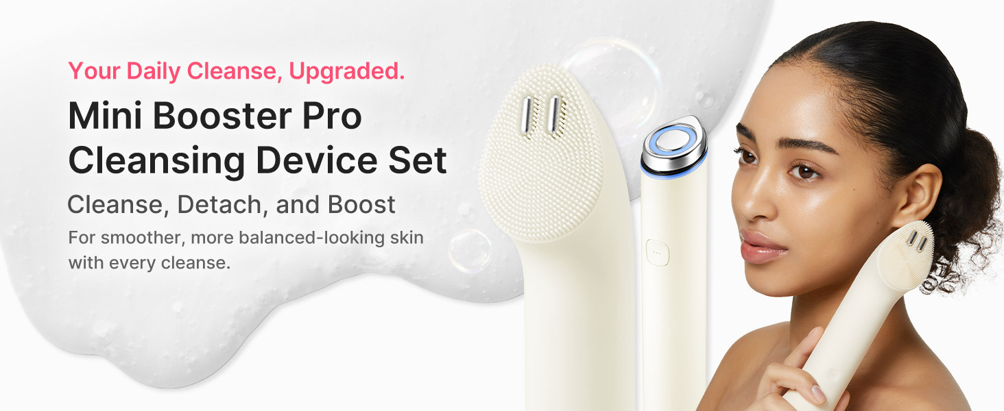 • [معزز للتنظيف والعناية بالبشرة 2 في 1] أكثر من مجرد جهاز تنظيف - قم بتوصيل رأس تنظيف الوجه المعزز لتنظيف المسام بشكل شامل. بعد التنظيف، افصلي الرأس واستخدمي Mini Booster Pro Plus للمساعدة في تعزيز امتصاص منتجات العناية بالبشرة. روتين كامل للوجه في المنزل في جهاز واحد صغير الحجم.