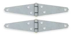 'Strap Hinge, Steel Material, With Holes, 3 Holes per Leaf, 270 Degrees Range of Motion, 4 In. Door Leaf Height, 4 In. Frame Leaf Height, 1-1/2 In. Door Leaf Width, 1-15/16 In. Frame Leaf Width, 0.075 In. Door Leaf Thickness, 0.075 In. Frame Leaf Thickness, Plain Bearing Type, Rounded Corners, Included Hardware, Full Surface Mounting, Steel Pin Material, Nonremovable Pin Type'
