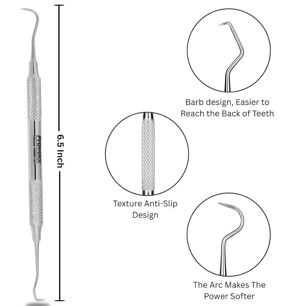 Keep your smile looking clean and polished with the Promax Dental Tartar Scraper Tool. Made from durable stainless steel, this single-piece tool helps remove plaque, tartar buildup, food debris, and stains that daily brushing and flossing may miss. The ergonomic non-slip handle ensures a secure grip and precise control while reaching difficult areas, making it practical for at-home use or as part of a professional kit. Compact and lightweight, this oral hygiene tool is portable, easy to sanitize, and designed for long-lasting use. Disclaimer: For personal oral care use only. Not intended to diagnose, treat, cure, or prevent any medical condition. Regular dental visits are recommended.