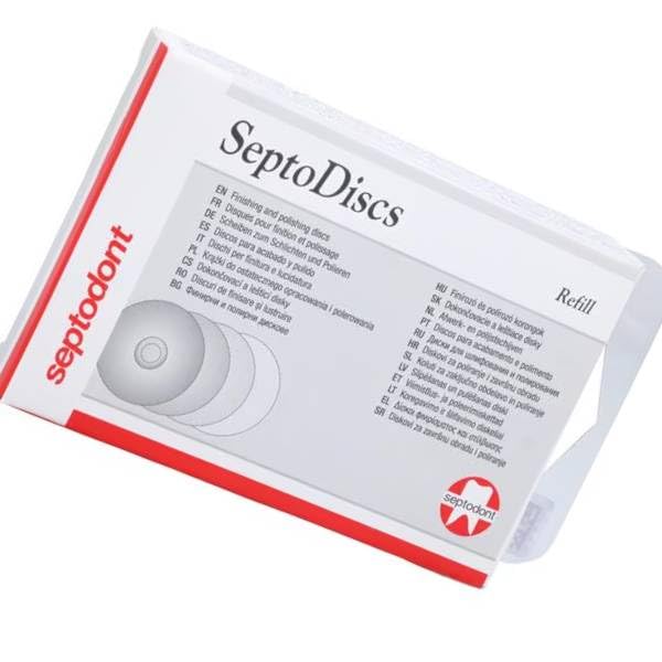 SeptoDiscs Refill, 1/2" Abrasive Discs, Coarse Grit, 50/Bx. The flexible discs allow access for interproximal trimming and incisal edges. The coarser grits remove large excesses