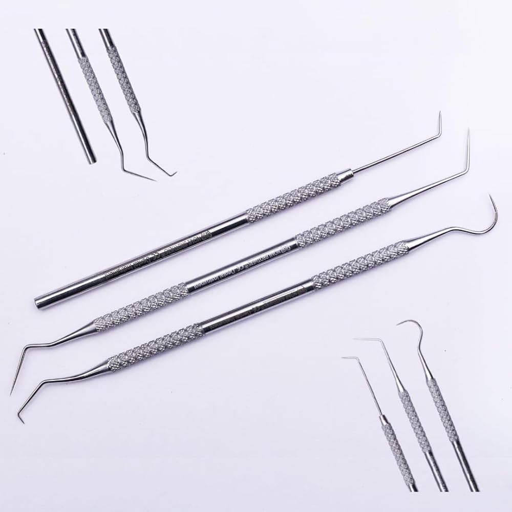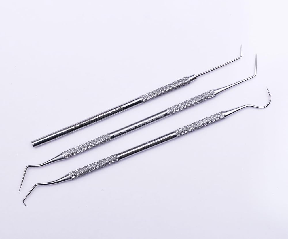 مجموعة من ثلاثة أدوات دقيقة لمستكشف الأسنان ومسبار اللثة لفحص تجويف الفم