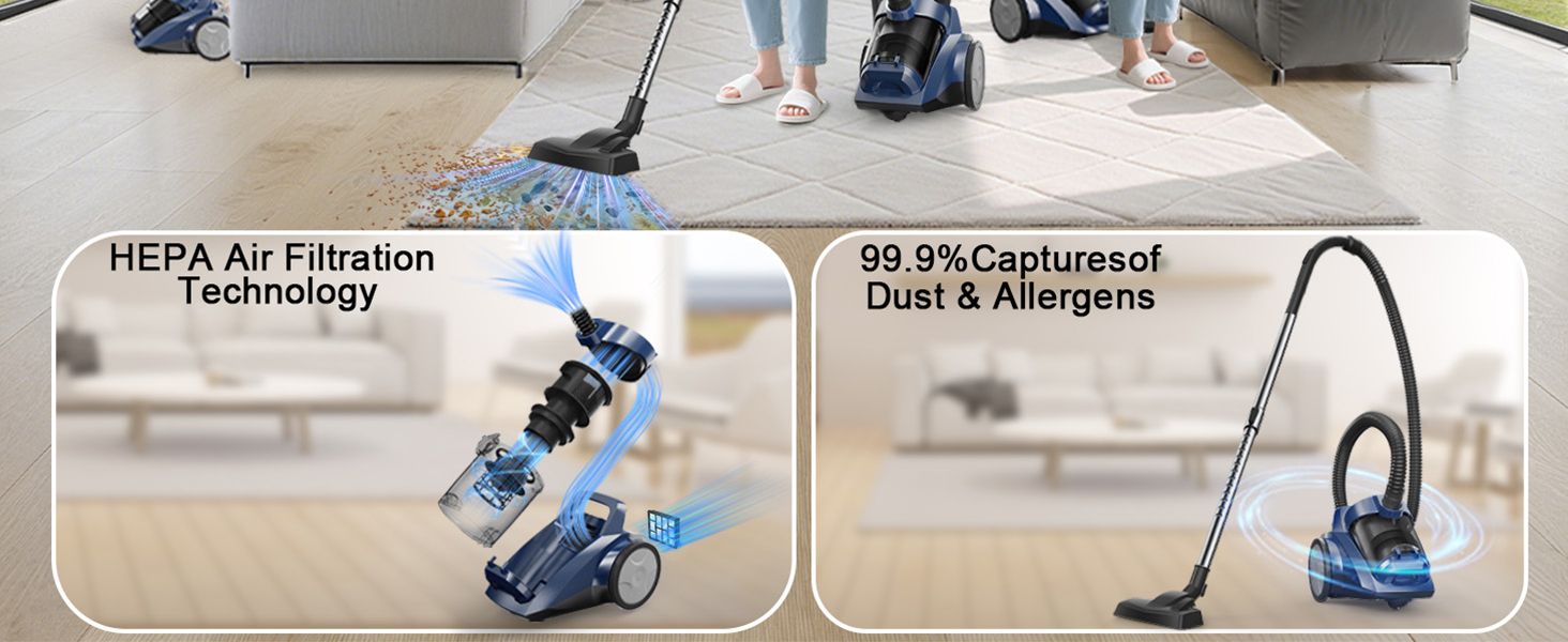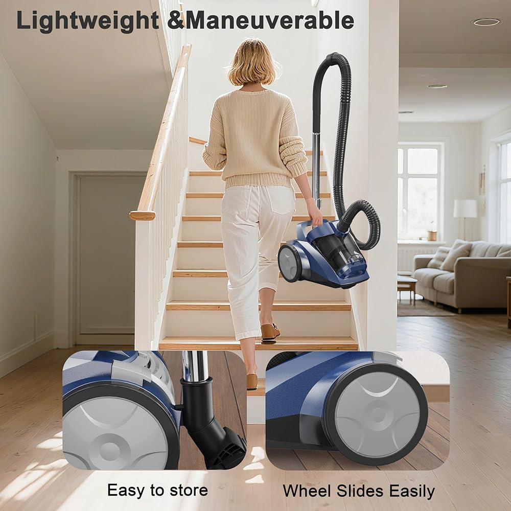 مكنسة كهربائية أسطوانية بقوة 45 كيلو باسكال، مكانس كهربائية بدون اكياس للمنزل مع 5 أدوات، كوب غبار 4.5 كيو تي، فلتر هيبا مزدوج، مكانس كهربائية خفيفة الوزن متعددة الأسطح للسجاد والأرضيات الصلبة وشعر الحيوانات الأليفة