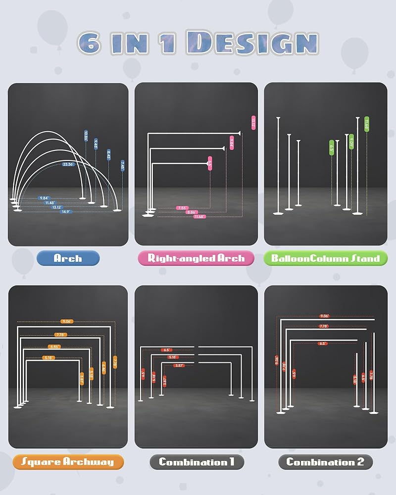 تصميم 6 في 1: أطلق العنان لإبداعك مع حامل قوس البالونات 6 في 1 الحصري! مجموعة واحدة تتحول إلى ستة أشكال مذهلة: قوس نصف دائري كلاسيكي، وقوس عصري قائم الزاوية، وحامل عمود بالون طويل، وممر مربع كبير، ومجموعتين مثيرتين للإعجاب. تتكيف مجموعة قوس البالونات المثالية هذه دون عناء مع أي موضوع أو مساحة أو احتفال، مما يوفر تنوعًا لا مثيل له لا يمكن أن تتطابق معه مجموعات بسيطة ذات شكل واحد.