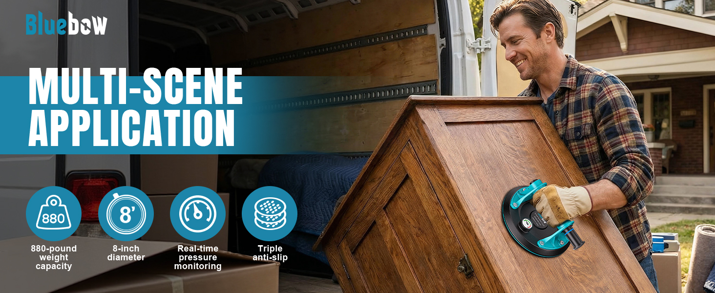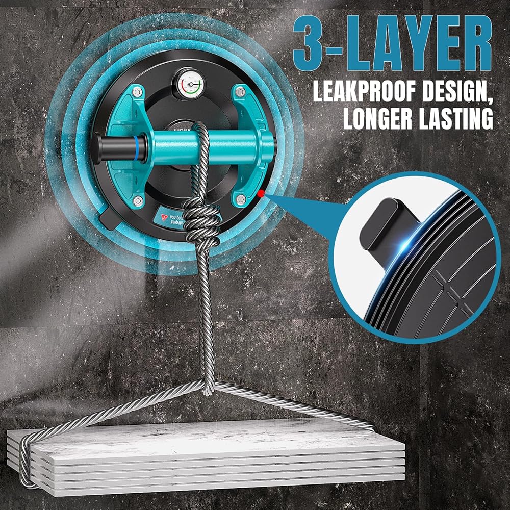 【سعة تحميل قوية للغاية تبلغ 880 رطلًا】 باستخدام مواد هندسية عالية القوة وتصميم هيكلي دقيق، يمكن لكوب شفط واحد أن يتحمل ما يصل إلى 440 رطلاً. عند استخدامها في أزواج، تصل سعة الحمل النظرية إلى 880 رطلاً، مما يوفر ضمان سلامة غير مسبوق لرفع وتأمين المعدات الثقيلة - وهو ما يتجاوز أداء أكواب الشفط العادية عدة مرات.