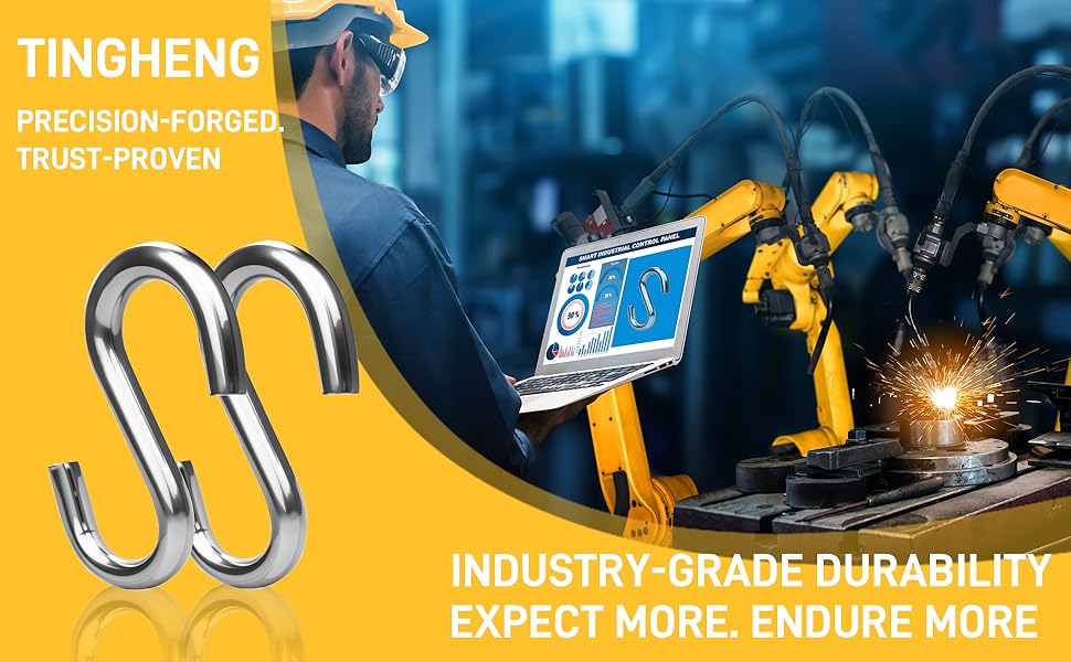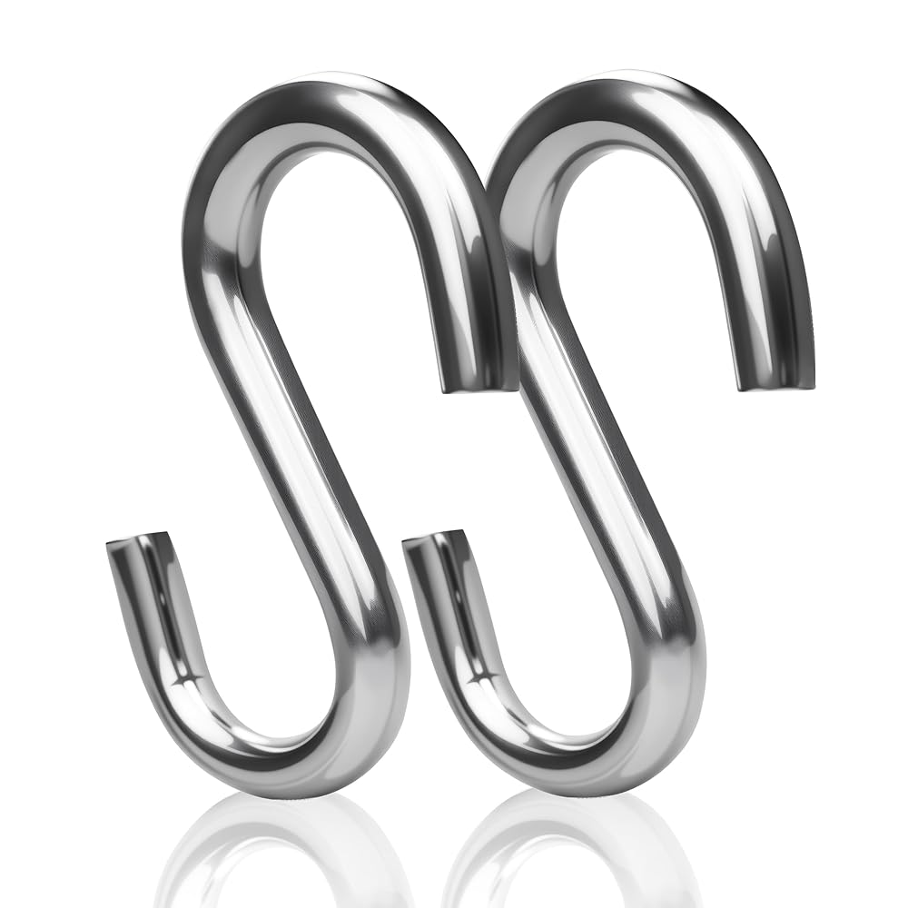 خطافات S شديدة التحمل مقاس 3.2 بوصة (عبوة من قطعتين)، سعة 550 رطل، خطافات تعليق من الفولاذ المقاوم للصدأ 304، خطاف على شكل حرف S للأرجوحة، والتأرجح، وتخزين المرآب، والاستخدام الخارجي