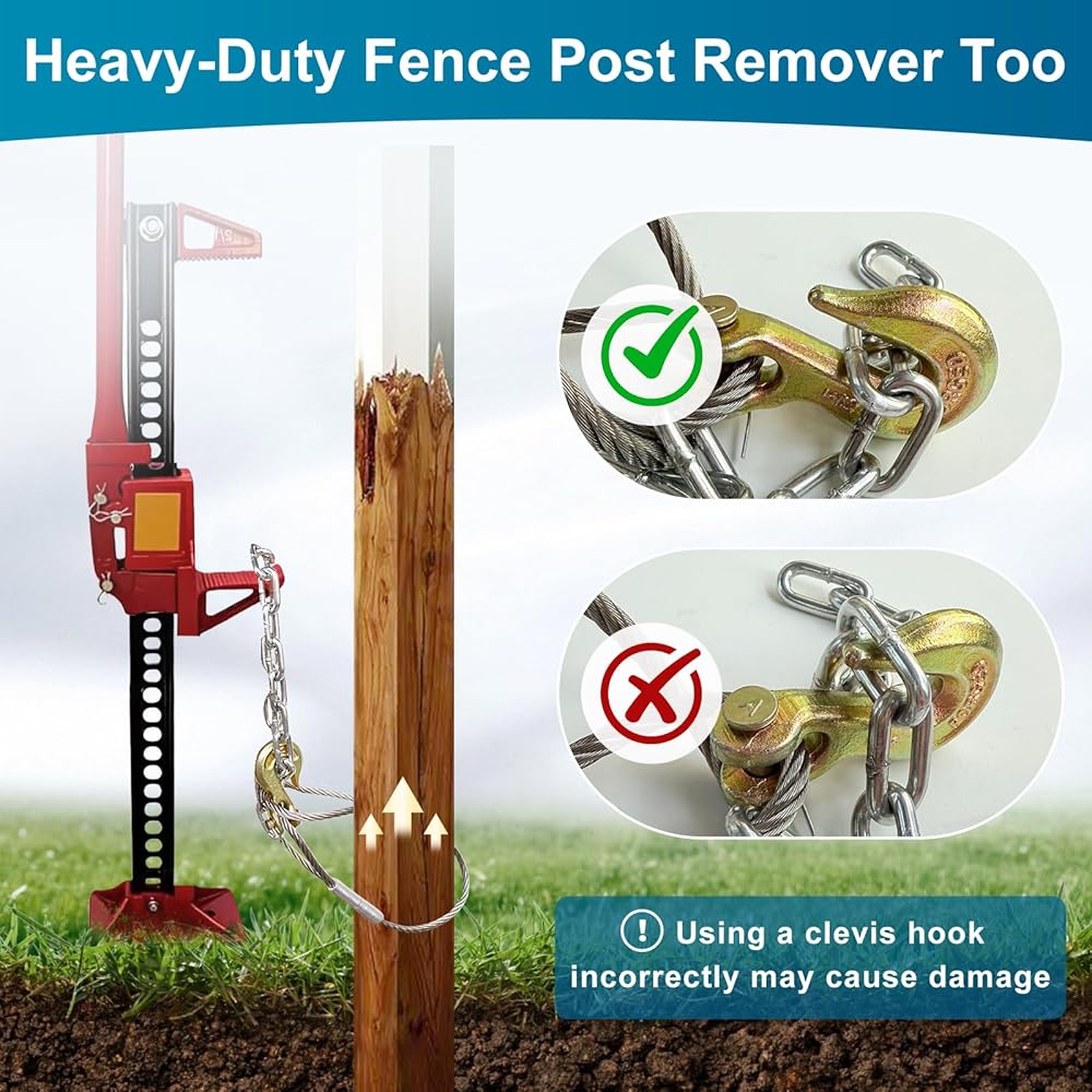 • DIY-Friendly and Saves Money: Transform any standard car jack or 4x4 lumber into a post-pulling powerhouse! The secure U-hooks connect effortlessly to lifting devices without slipping—no welding or special skills required. Remove unsightly broken posts in just 15 minutes, saving you time and professional fees.